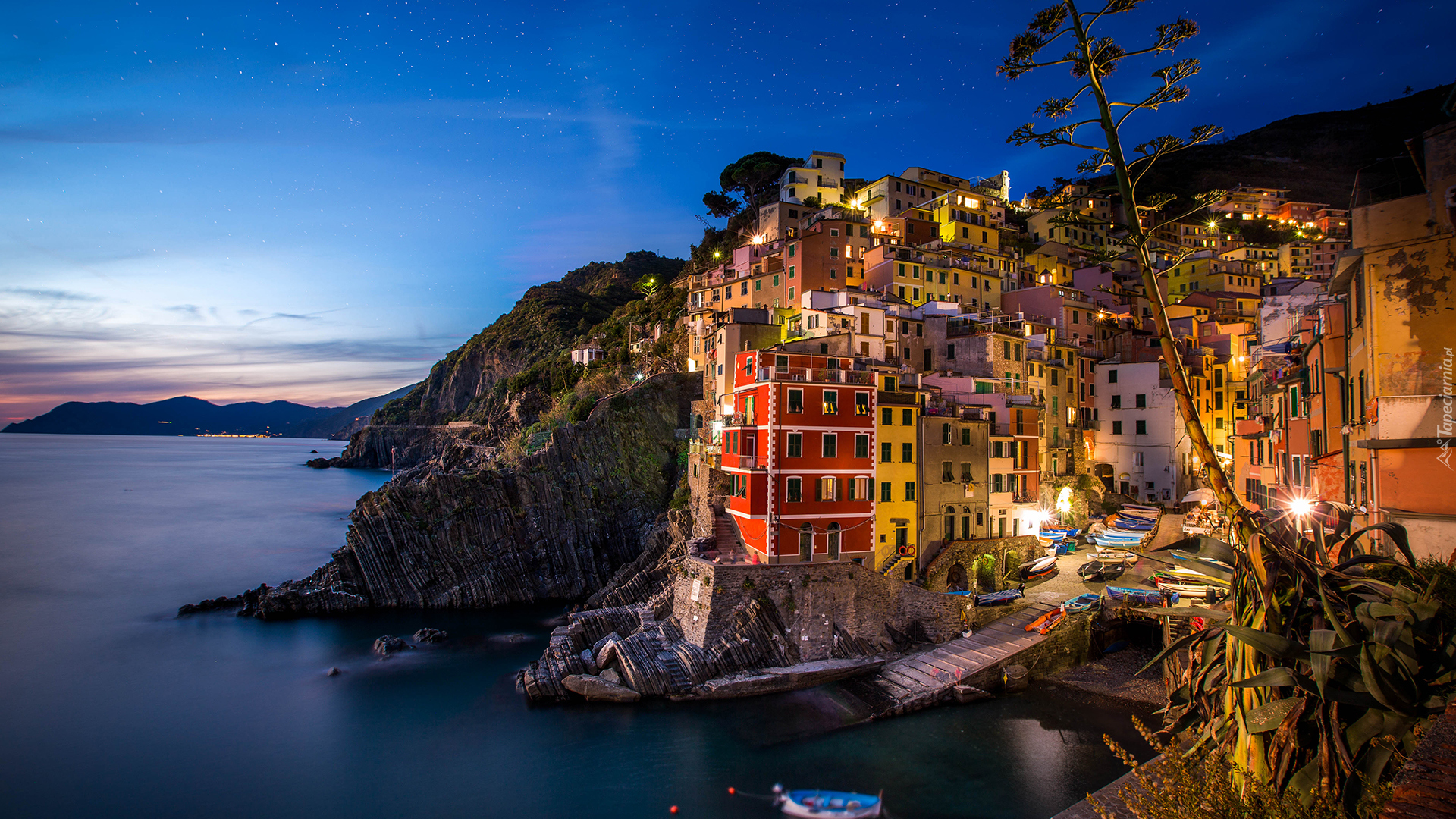 Edytor tapety: Miejscowość Riomaggiore we Włoszech o zmierzchu