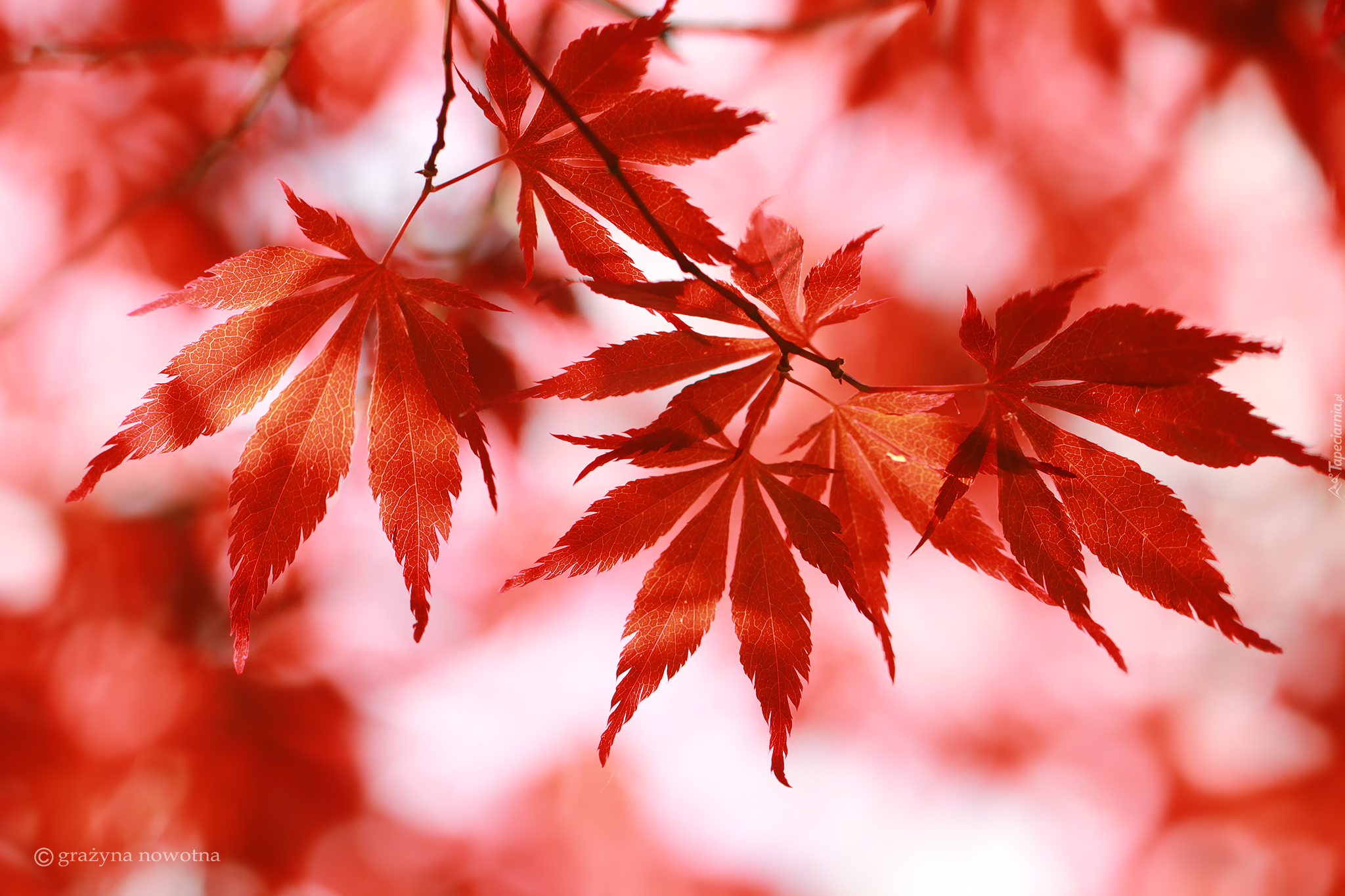 Edytor tapety: Czerwone liście klonu palmowego na gałązce