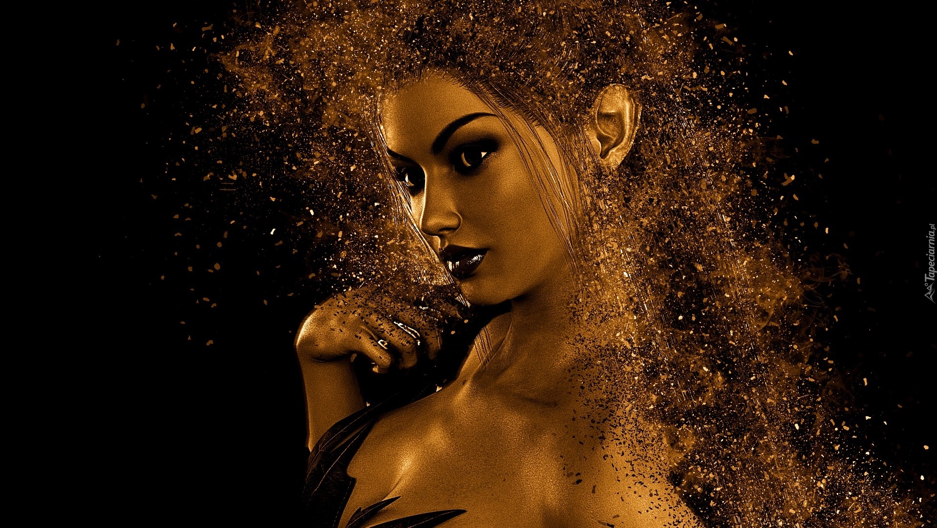 Edytor tapety: Kobieta wśród złotych drobinek w grafice 2D