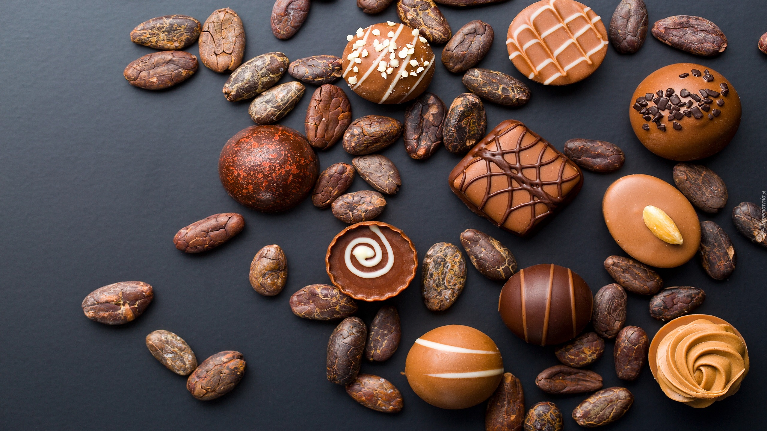 Edytor tapety: Rozsypane pralinki i orzeszki w czekoladzie