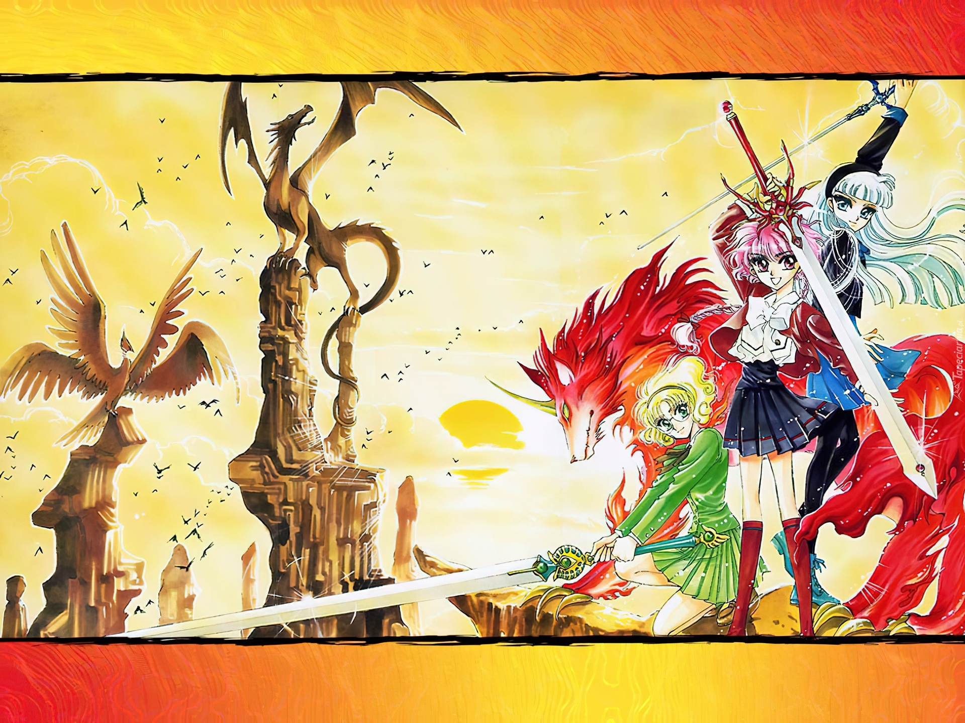Edytor tapety: smoki, ludzie, dziewczyny, Magic Knight Rayearth