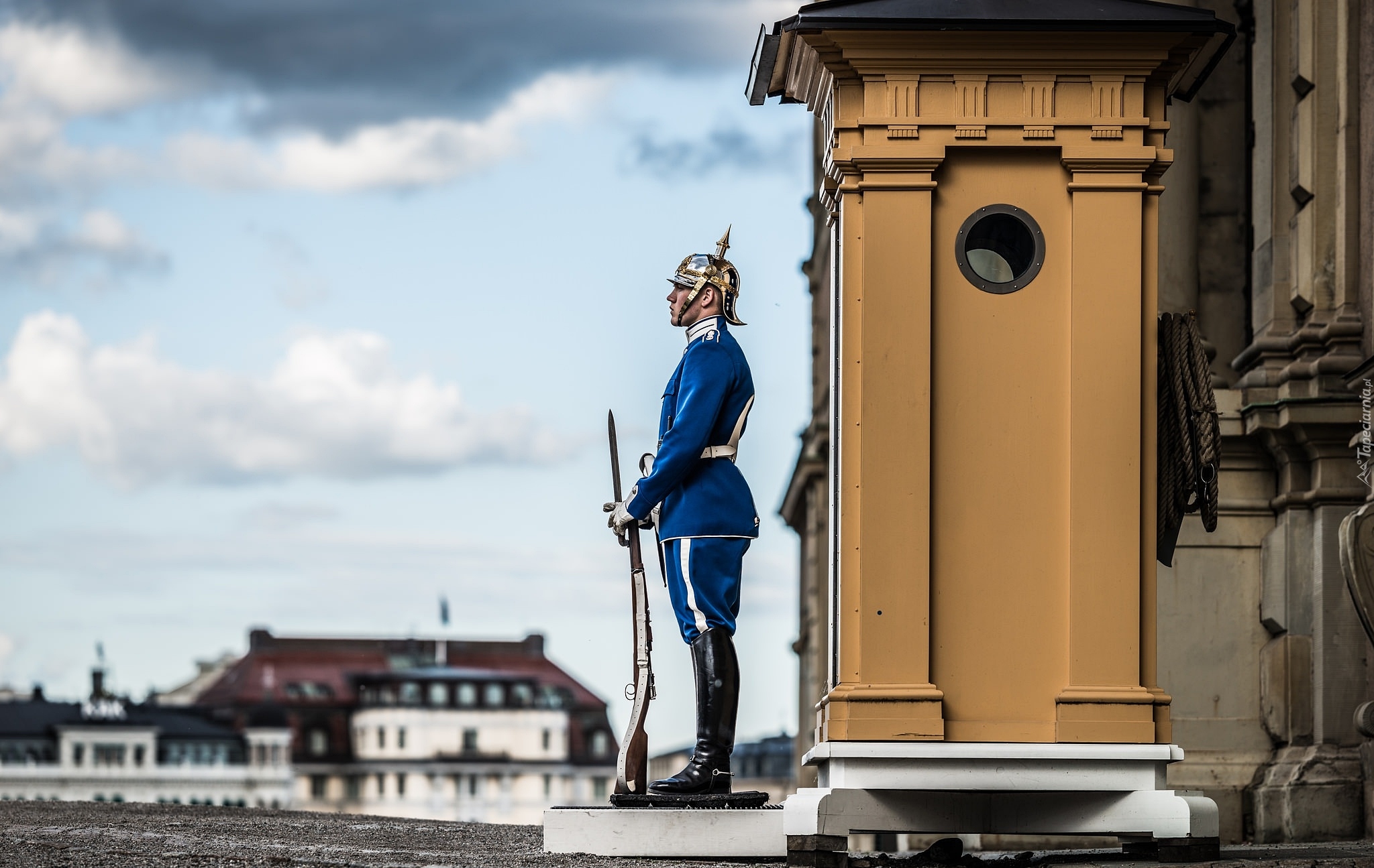 Edytor tapety: Żołnierz na warcie przed Grand Hotelem w Sztokholmie