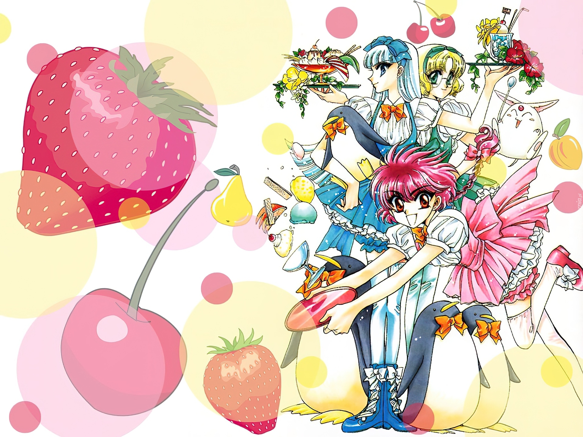 Edytor tapety: Magic Knight Rayearth, truskawka, ludzie, pluszak