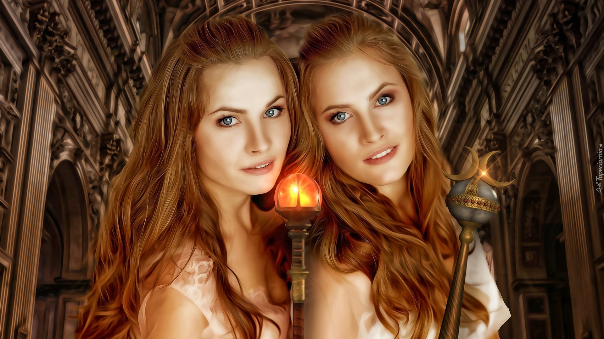 Edytor tapety: Dwie młode czarownice w grafice fractalius