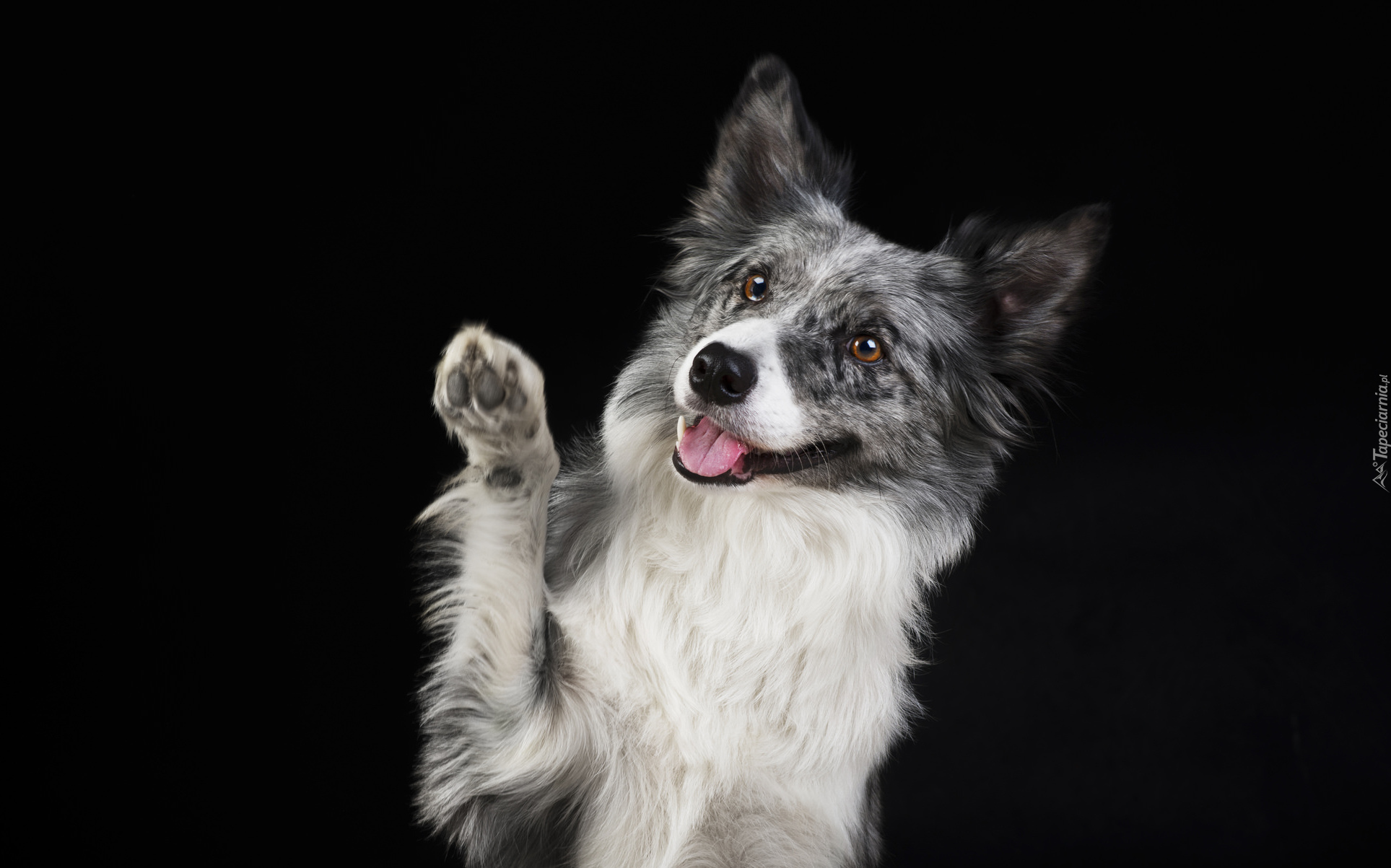Edytor tapety: Radosny border collie z łapką w górze