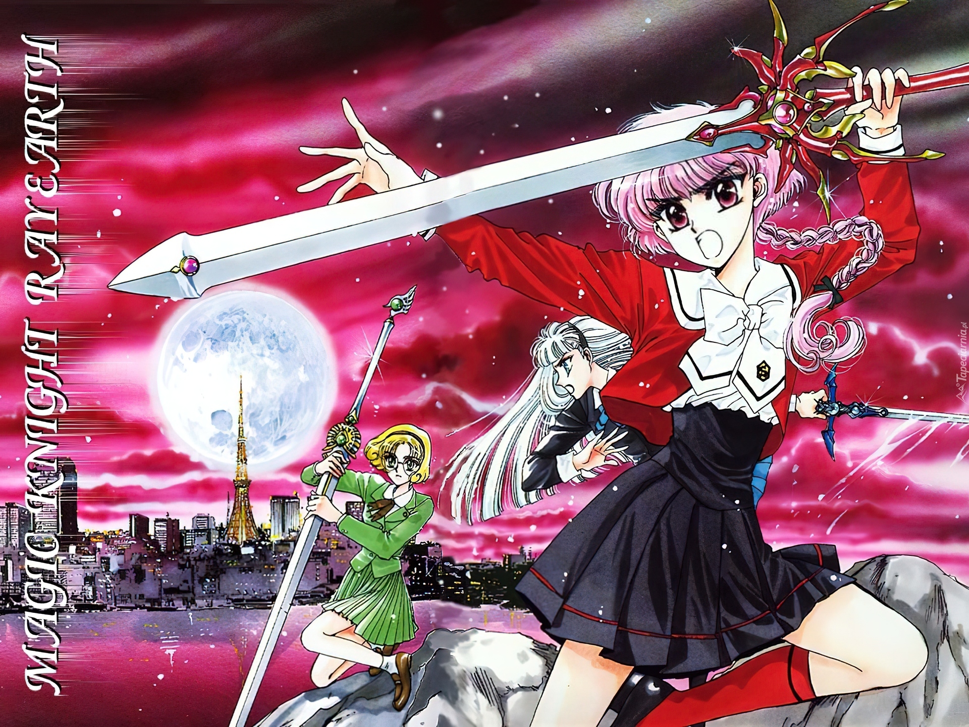 Edytor tapety: Magic Knight Rayearth, kobiety, księżyc, miecz