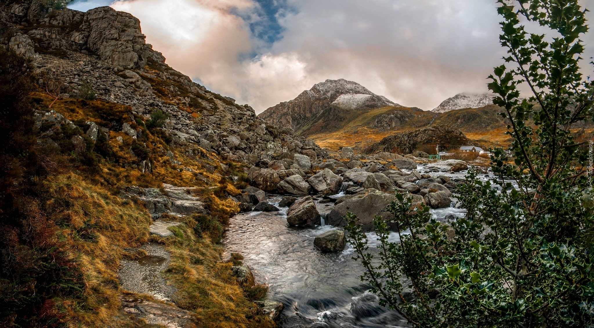 Edytor tapety: Strumyk płynący po kamieniach w pobliżu skał