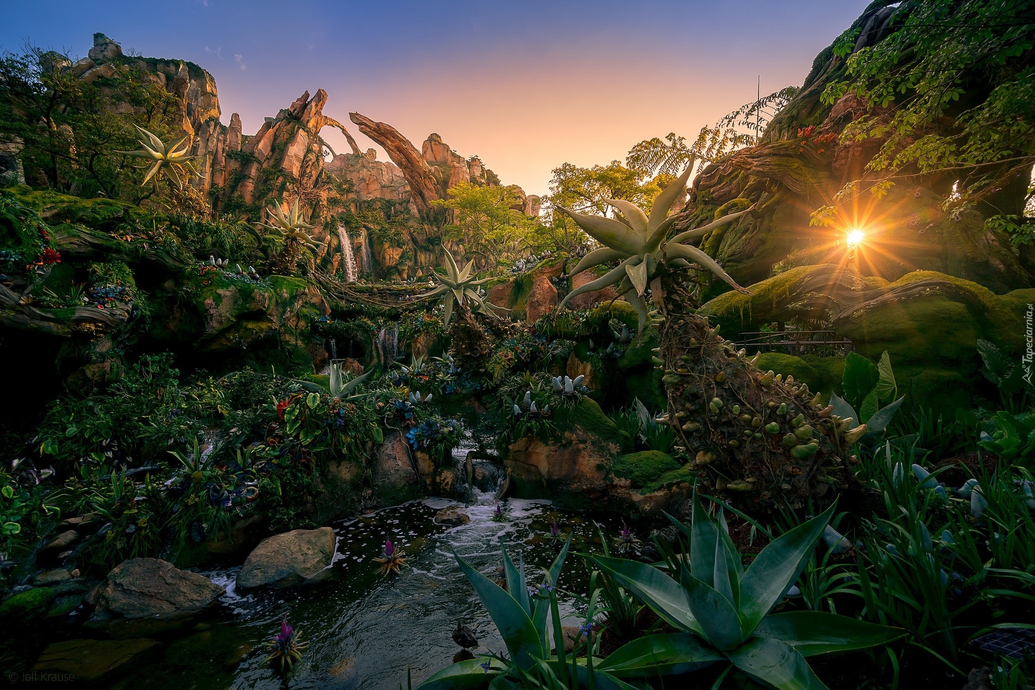 Edytor tapety: Promienie słońca padające na rośliny w egzotycznym ogrodzie