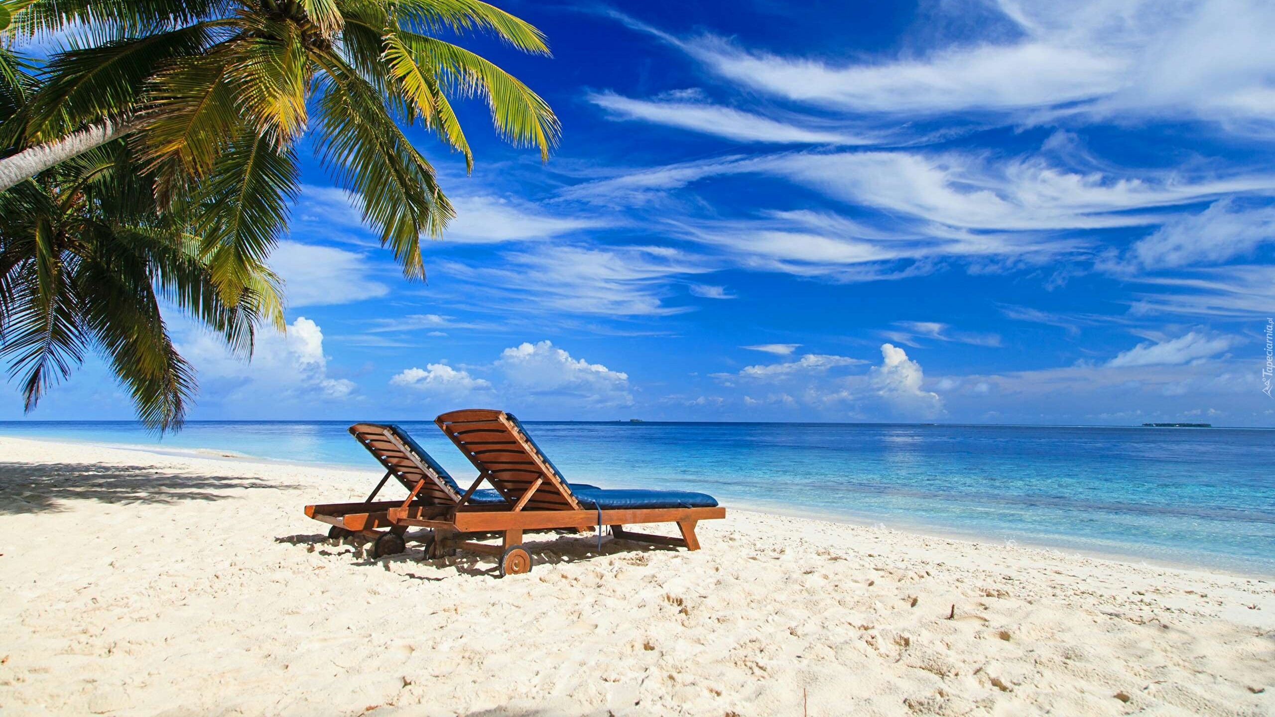 Edytor tapety: Leżaki pod palmami na Bahamach
