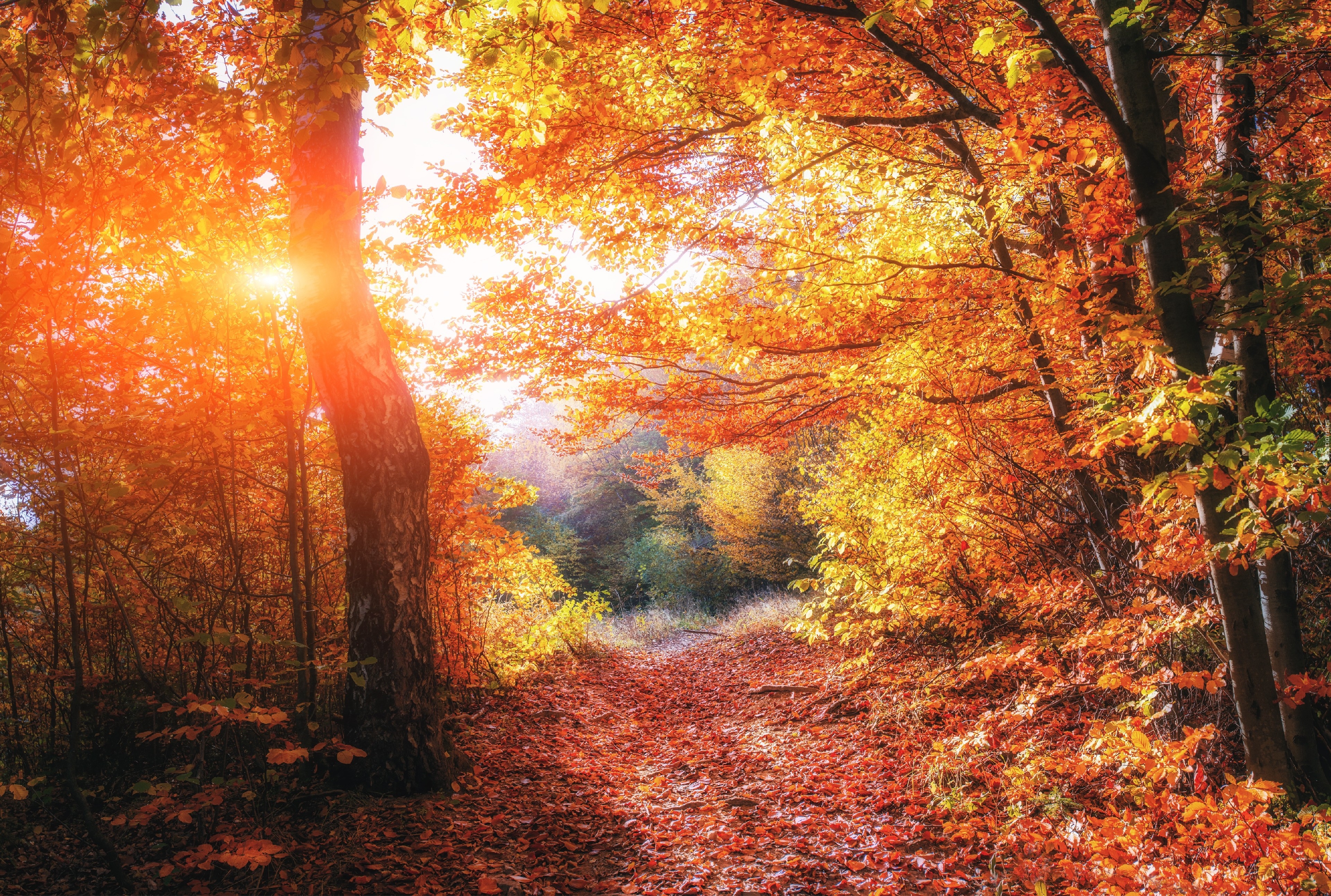 Edytor tapety: Promienie słońca zajrzały do jesiennego lasu