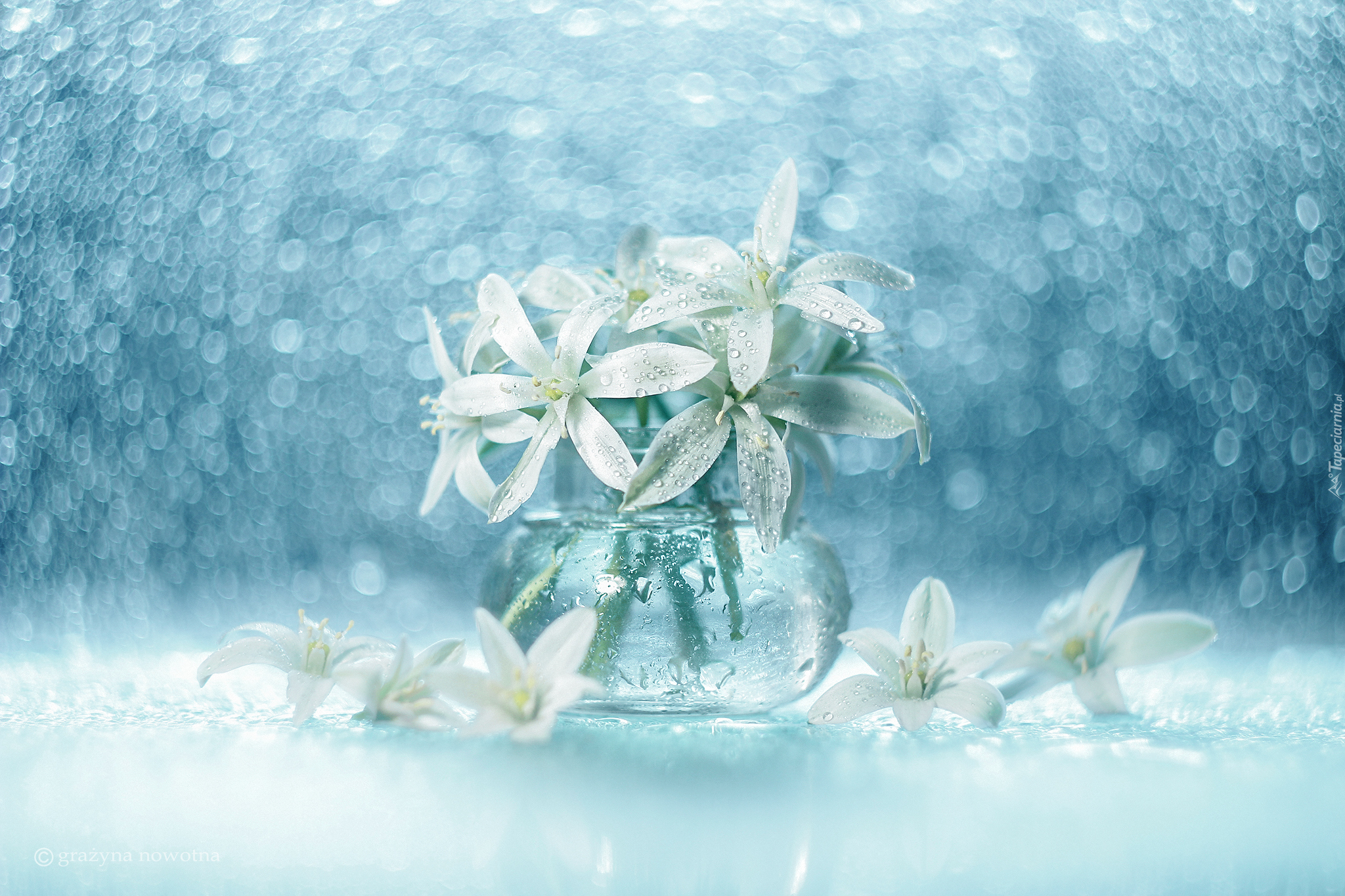 Edytor tapety: Białe kwiaty śniedka w wazoniku