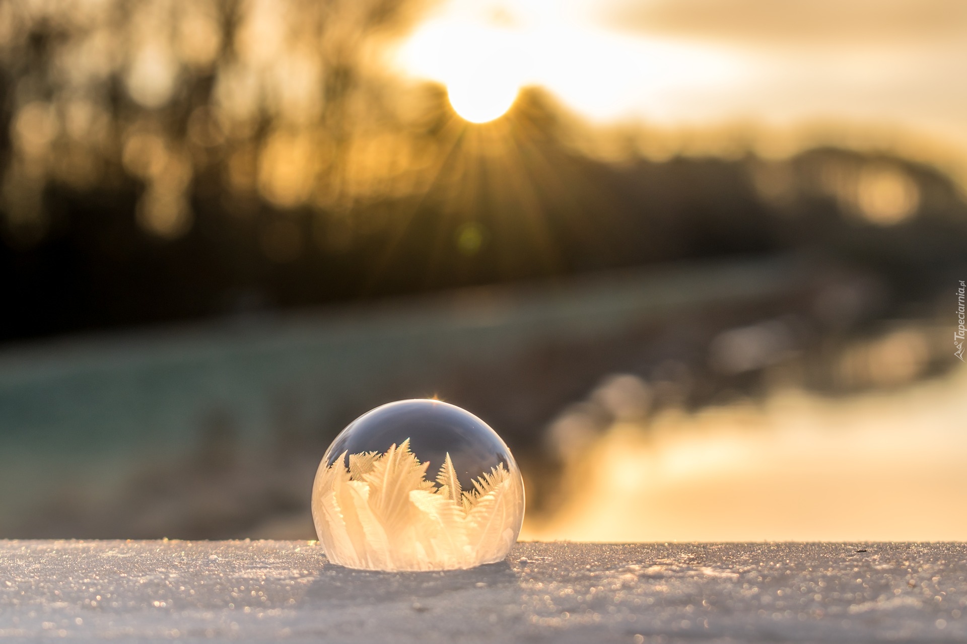 Edytor tapety: Oszroniona bańka mydlana w promieniach słońca