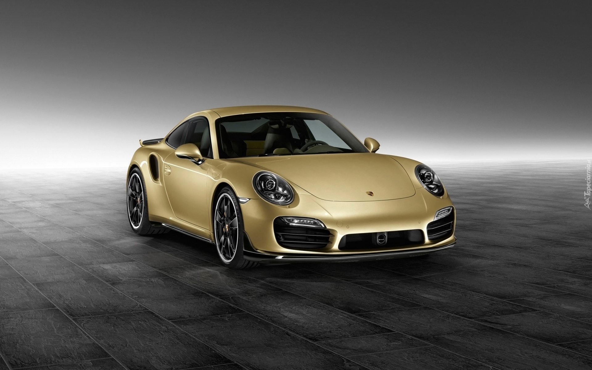 Edytor tapety: Porsche 911 Turbo Lime Gold 991 rocznik 2014