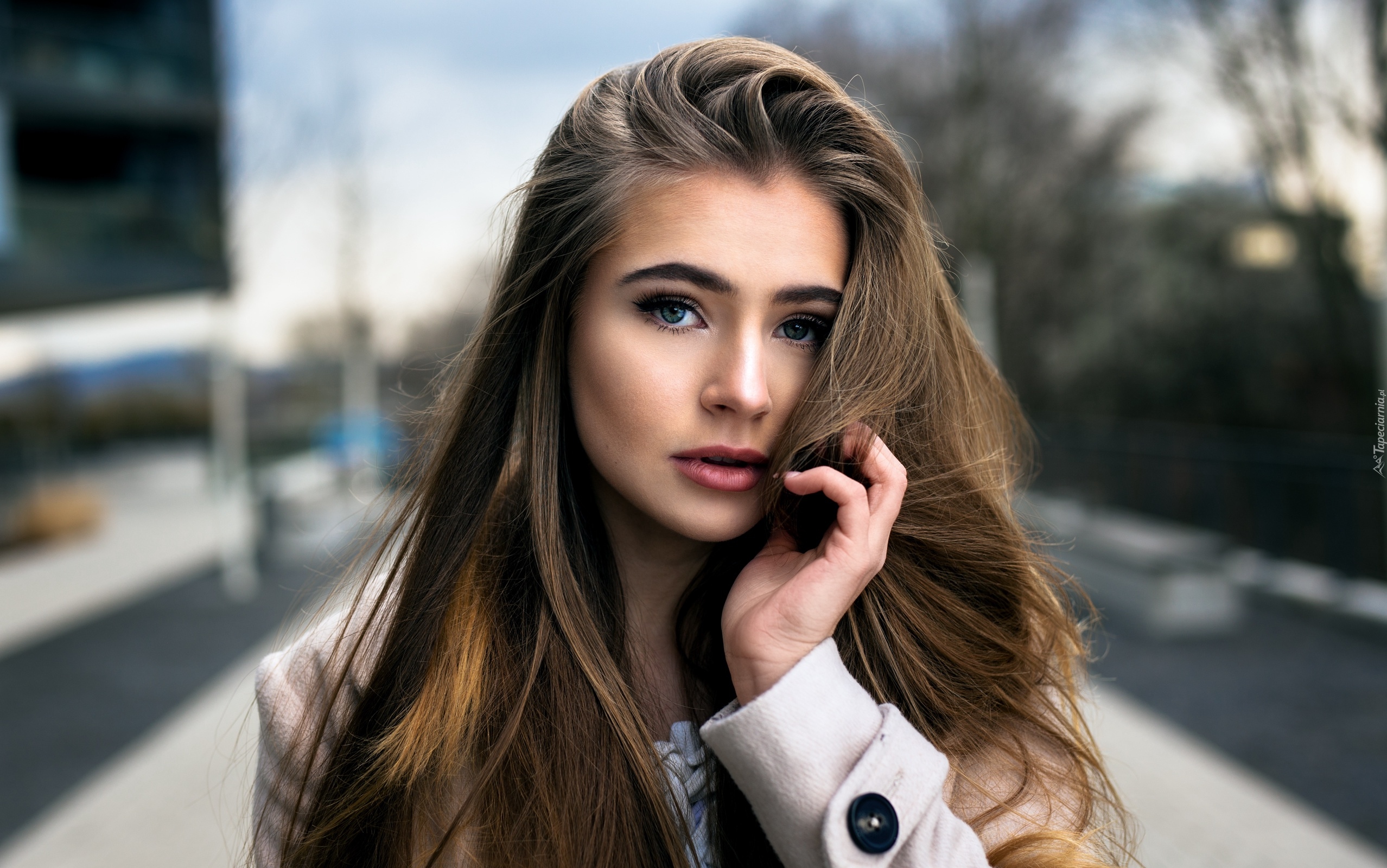 Edytor tapety: Kobieta w makijażu poprawia włosy