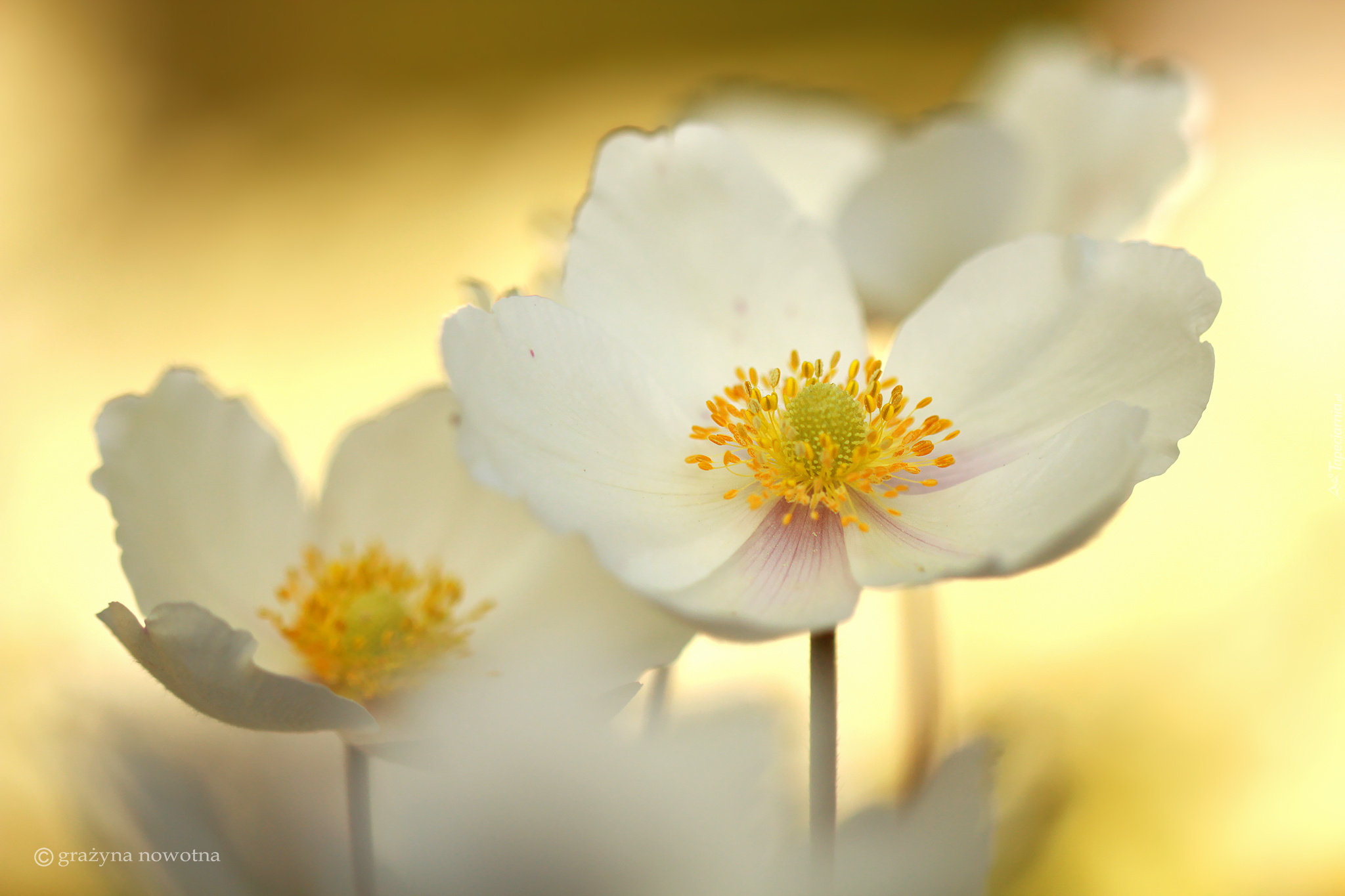 Edytor tapety: Białe kwiaty zawilca wielkokwiatowego