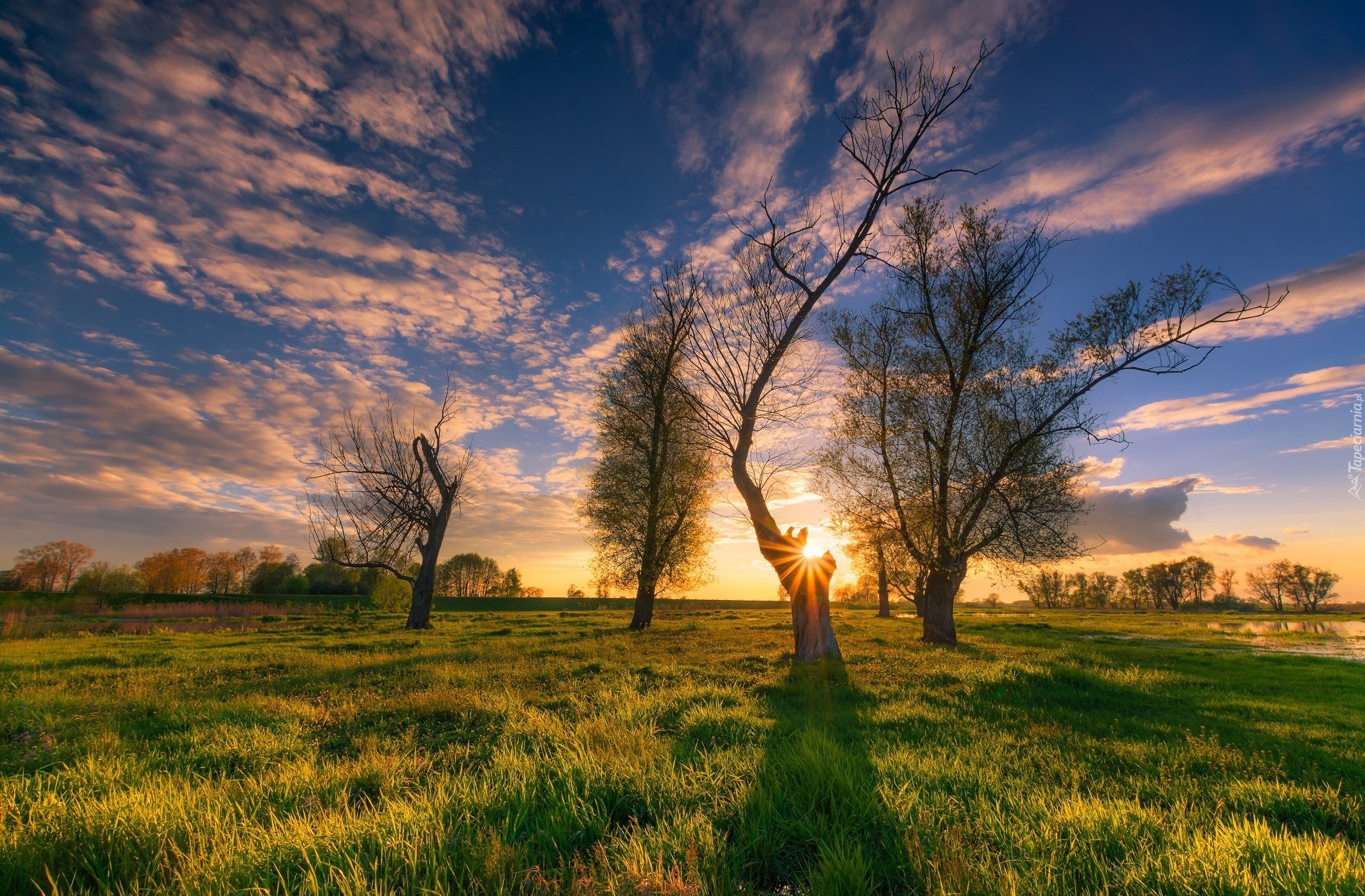 Edytor tapety: Promienie słońca przemykają się wśród drzew na łące