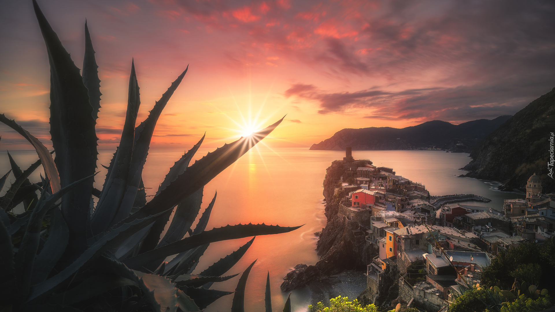 Edytor tapety: Widok na miasteczko Vernazza o zachodzie słońca