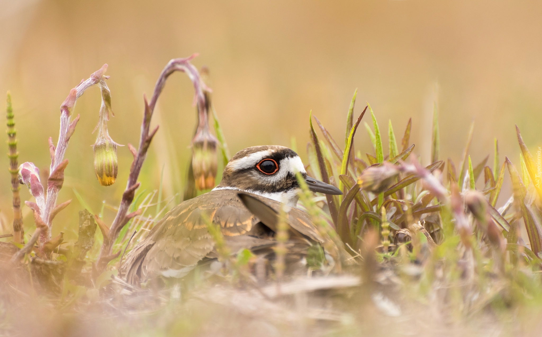 Edytor tapety: Sieweczka krzykliwa siedząca w trawie