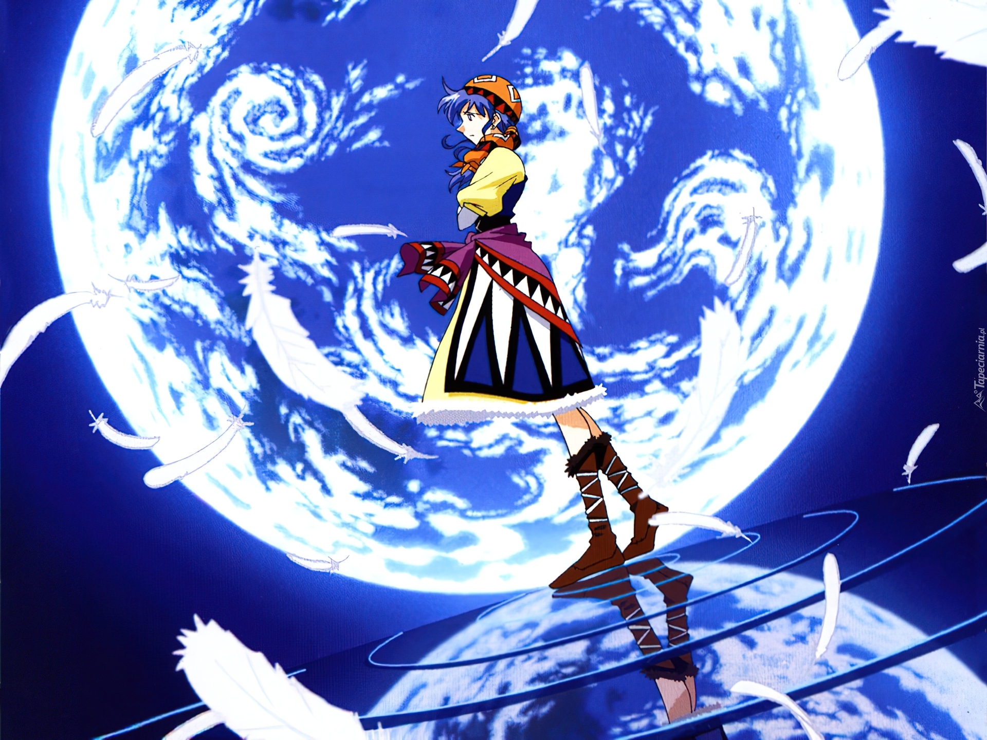 Edytor tapety: Lunar, kobieta, księżyc, pióra