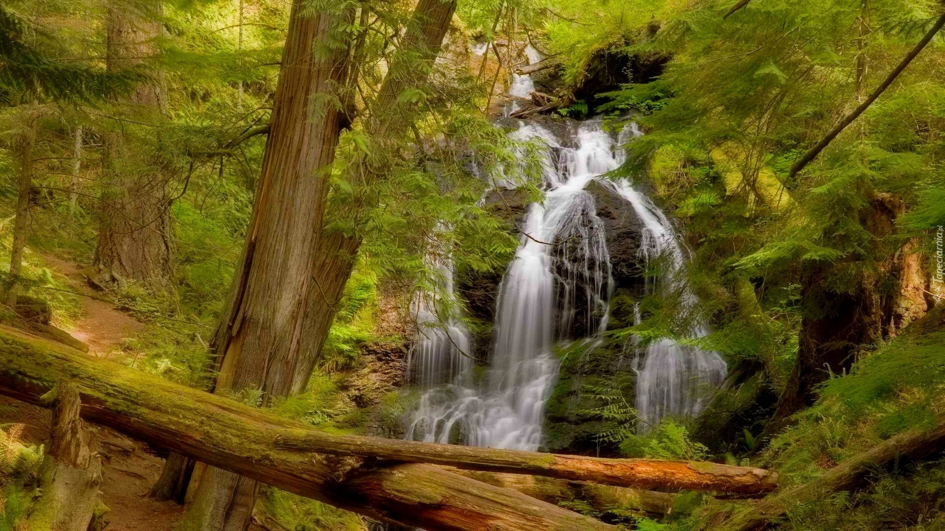 Edytor tapety: Wodospad kaskadowy na wyspie Orcas w stanie Waszyngton