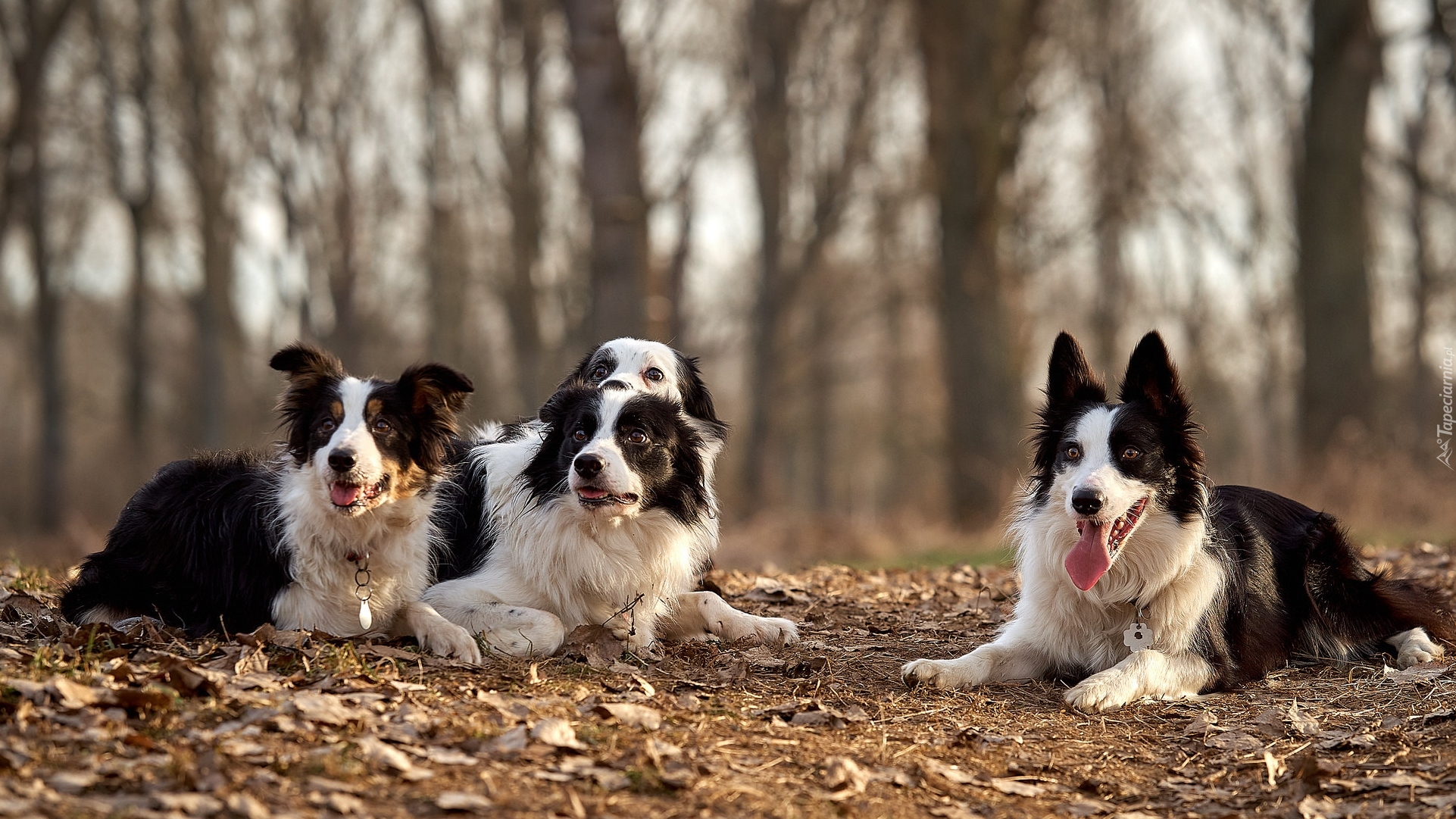 Edytor tapety: Cztery psy rasy border collie na leśnej polanie