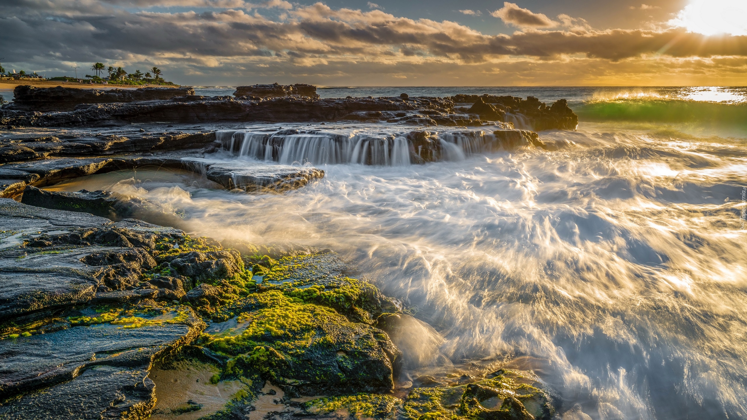 Edytor tapety: Przybrzeżne skały obmywane falami oceanu