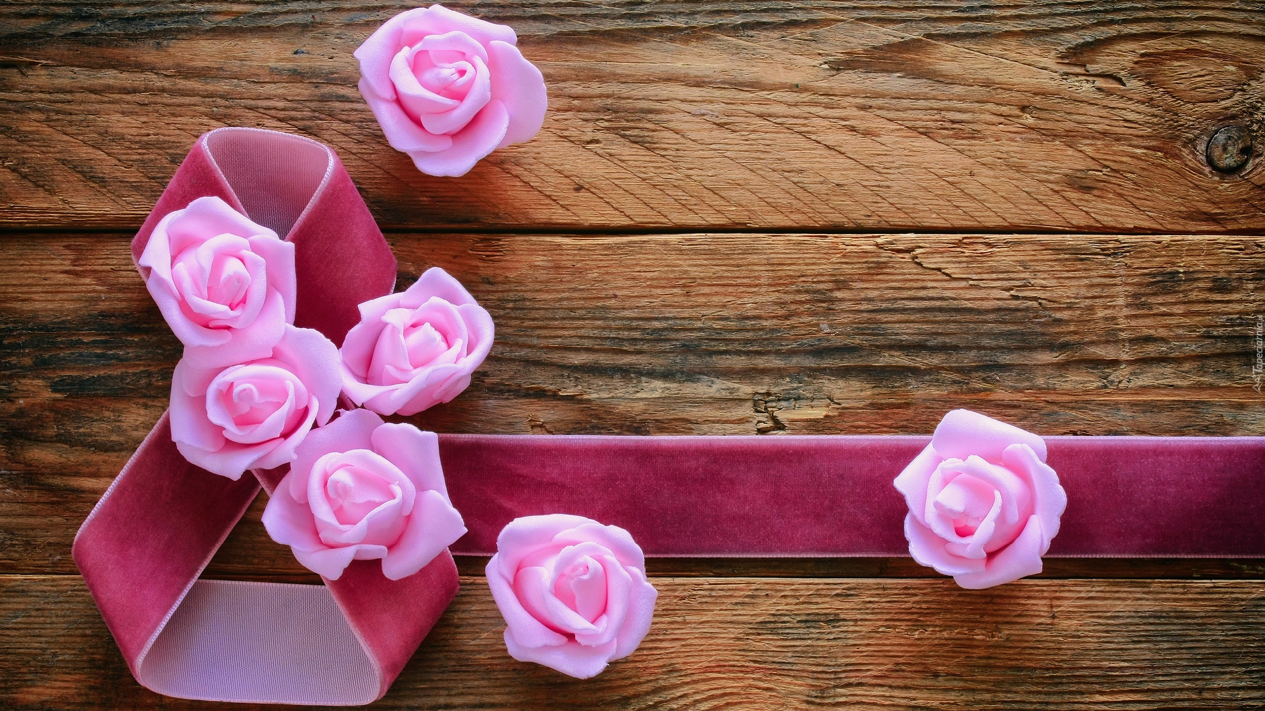 Edytor tapety: Wstążka z różyczkami na Dzień Kobiet