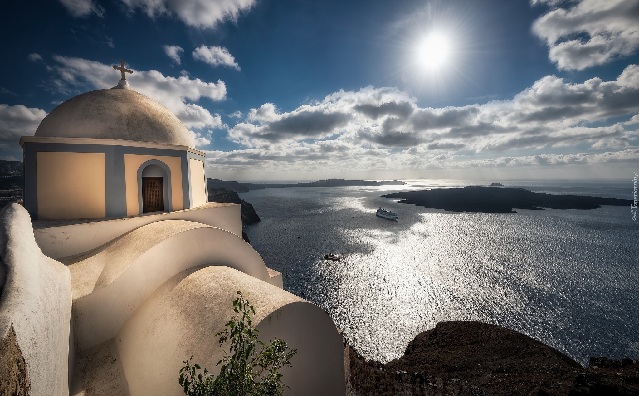 Edytor tapety: Katolicki kościółek Agios Stylianos na wyspie Santorini