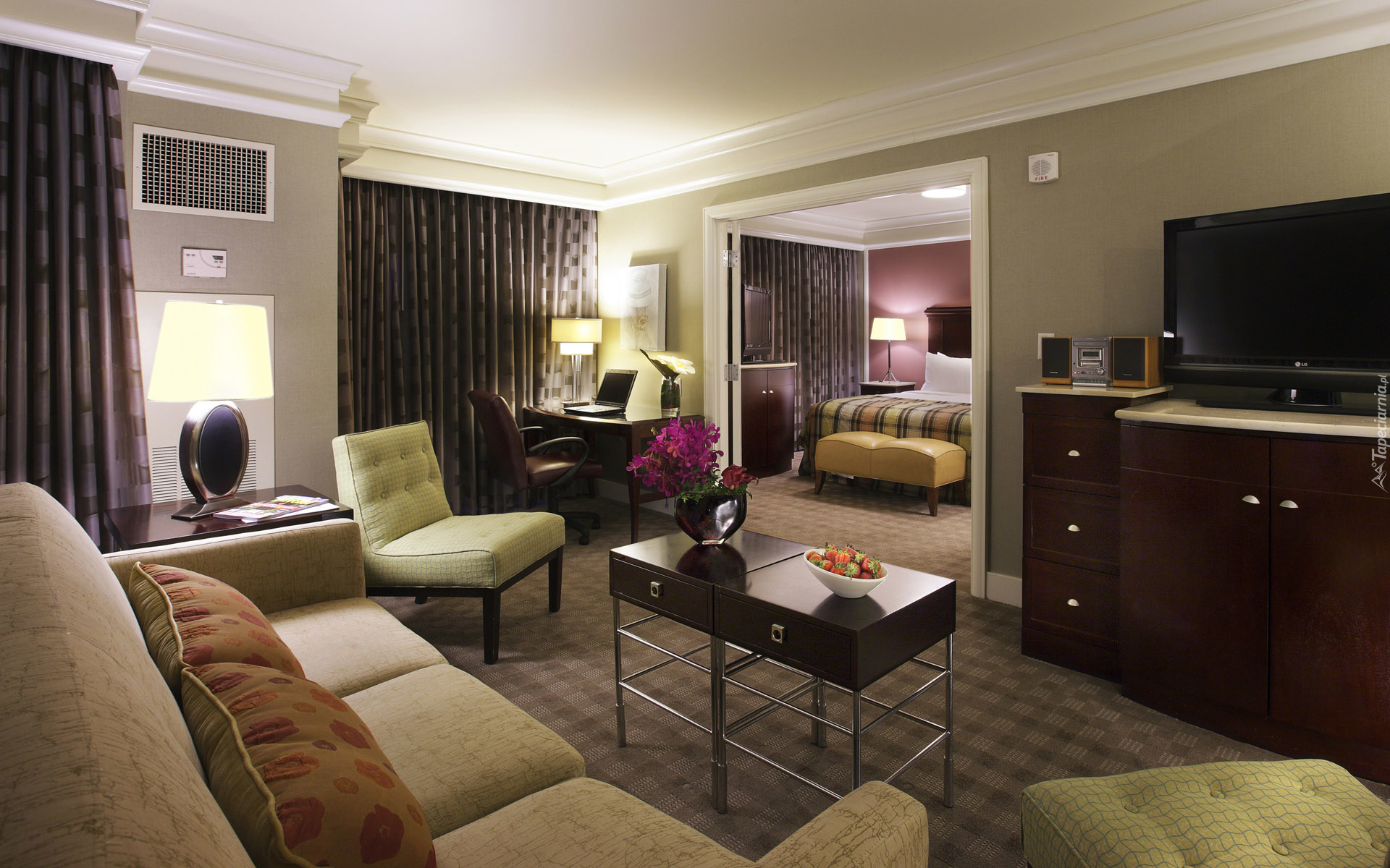 Edytor tapety: Wnętrze umeblowanego pokoju z widokiem na sypialnię