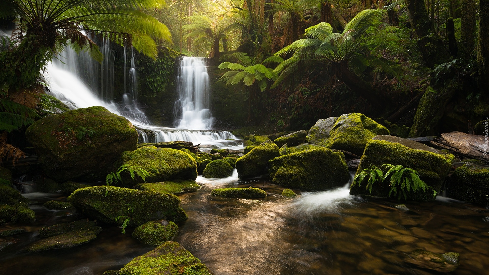 Edytor tapety: Wodospad w Parku Narodowym Mount Field na Tasmanii