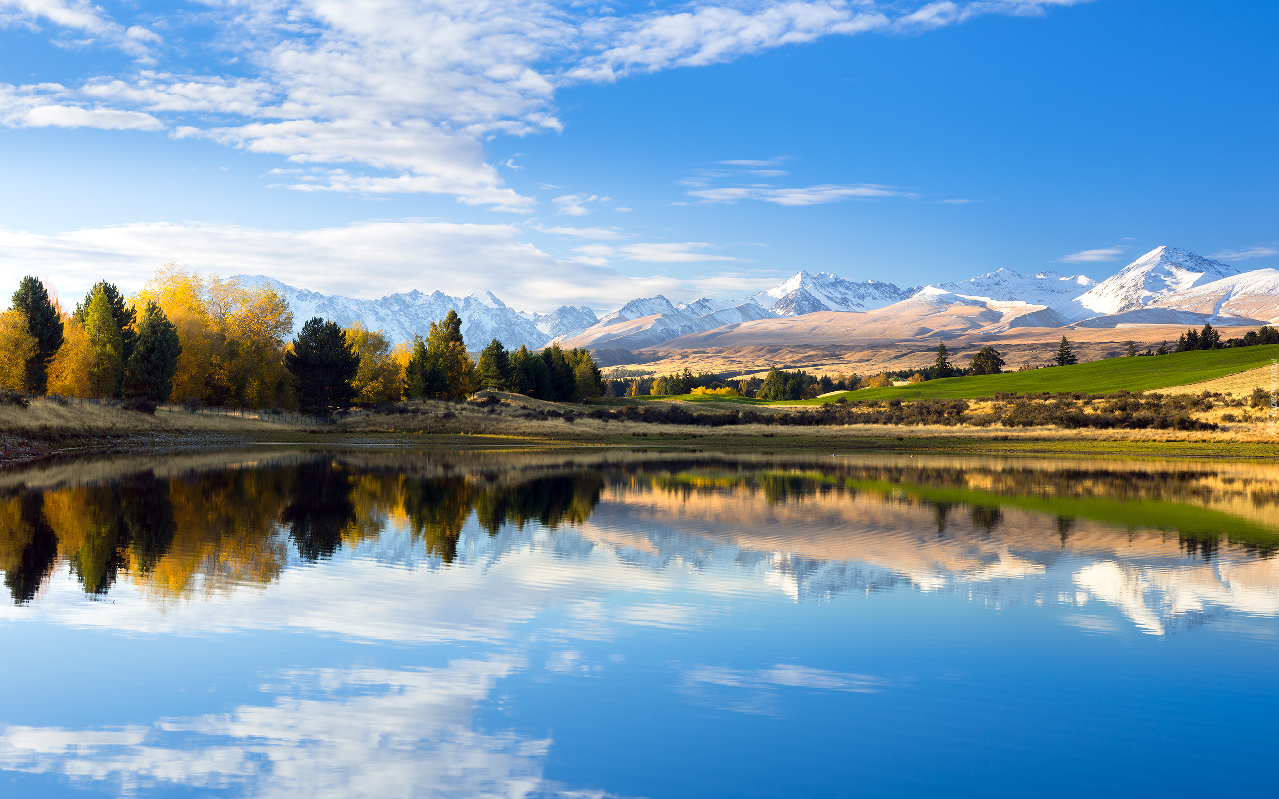 Edytor tapety: Drzewa i roślinność nad górskim jeziorem