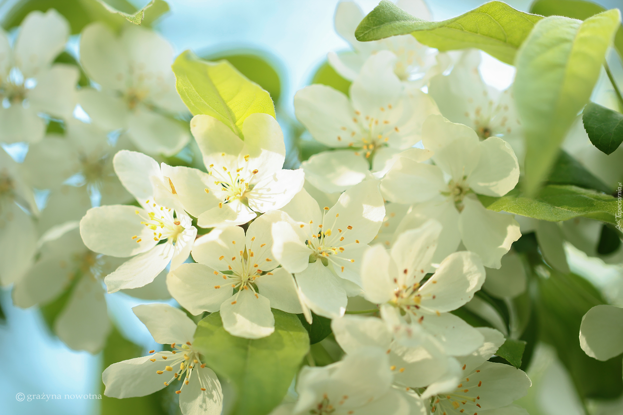 Edytor tapety: Białe kwiaty drzewa owocowego