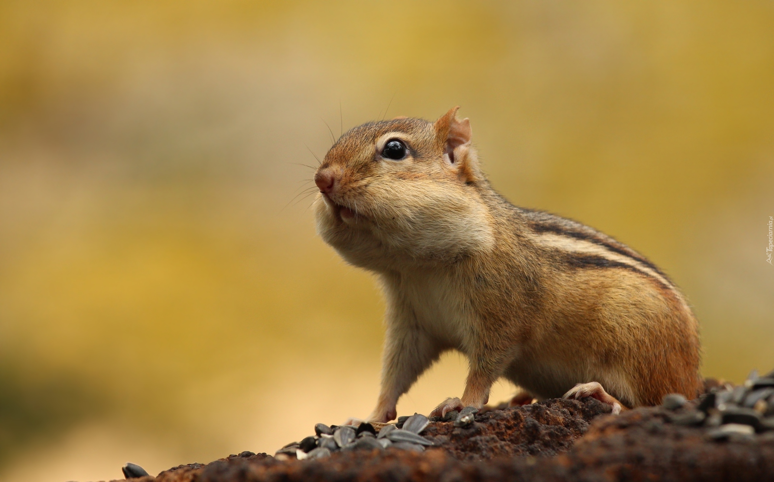 Edytor tapety: Wiewiórka chimpunk zajada ziarna słonecznika