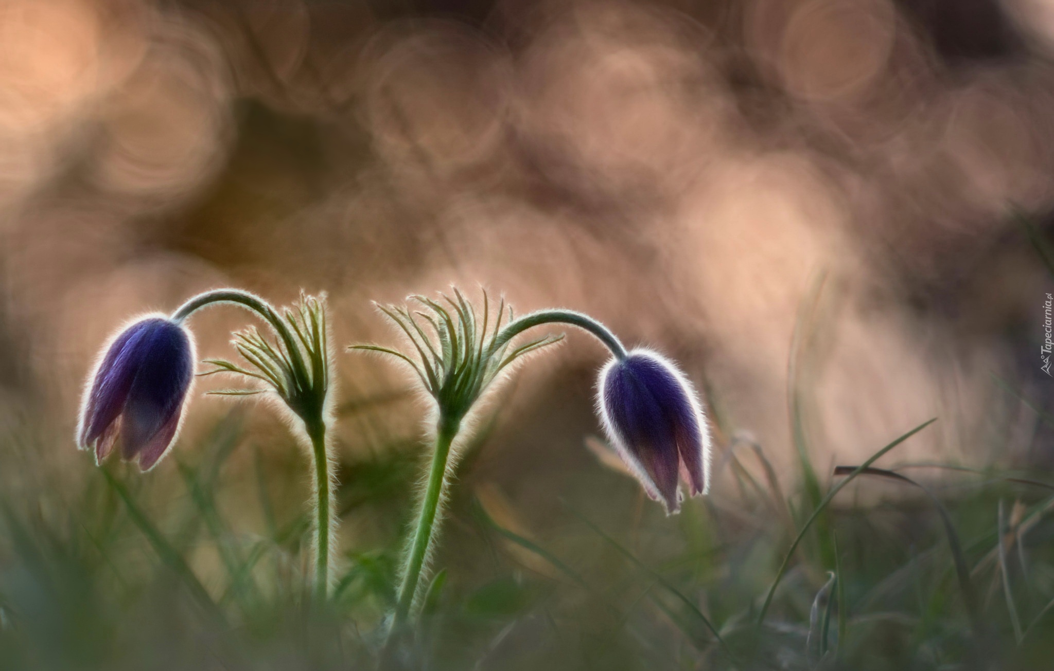 Edytor tapety: Dwie pochylone sasanki w rozmyciu
