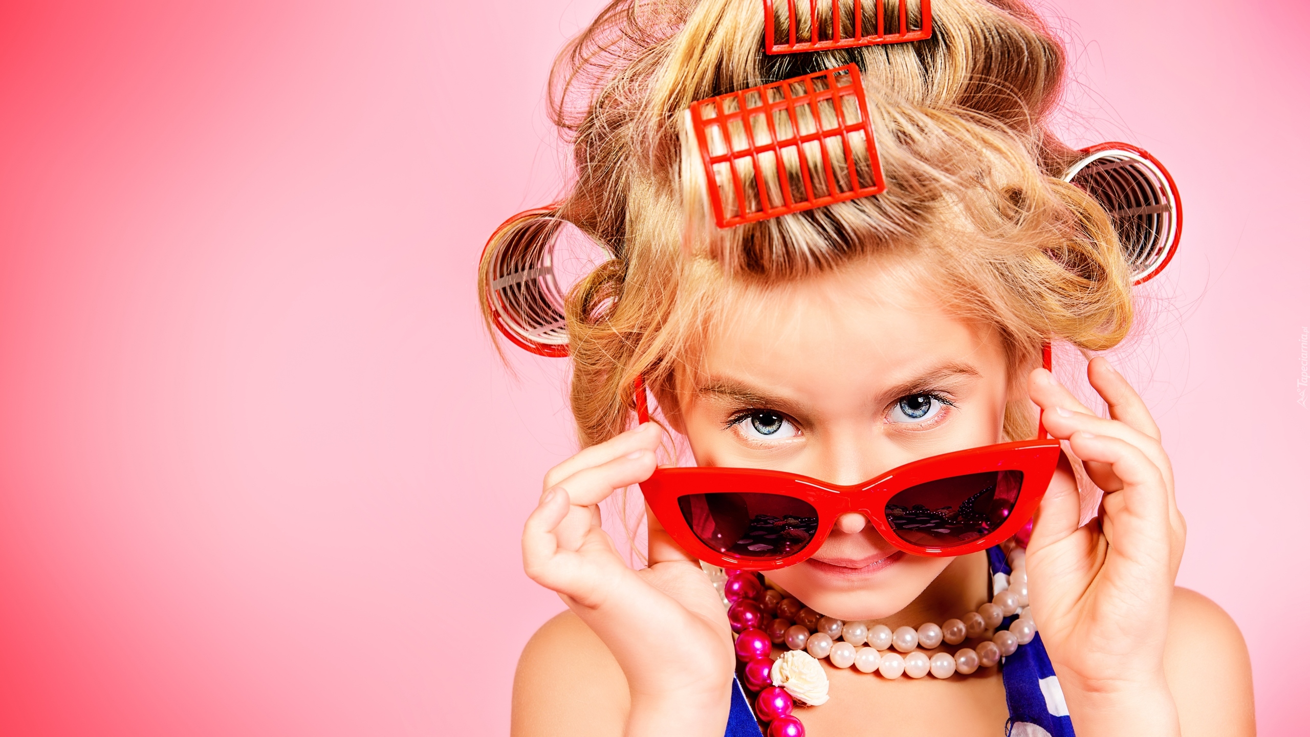 Edytor tapety: Dziewczynka w wałkach na głowie i okularach przeciwsłonecznych