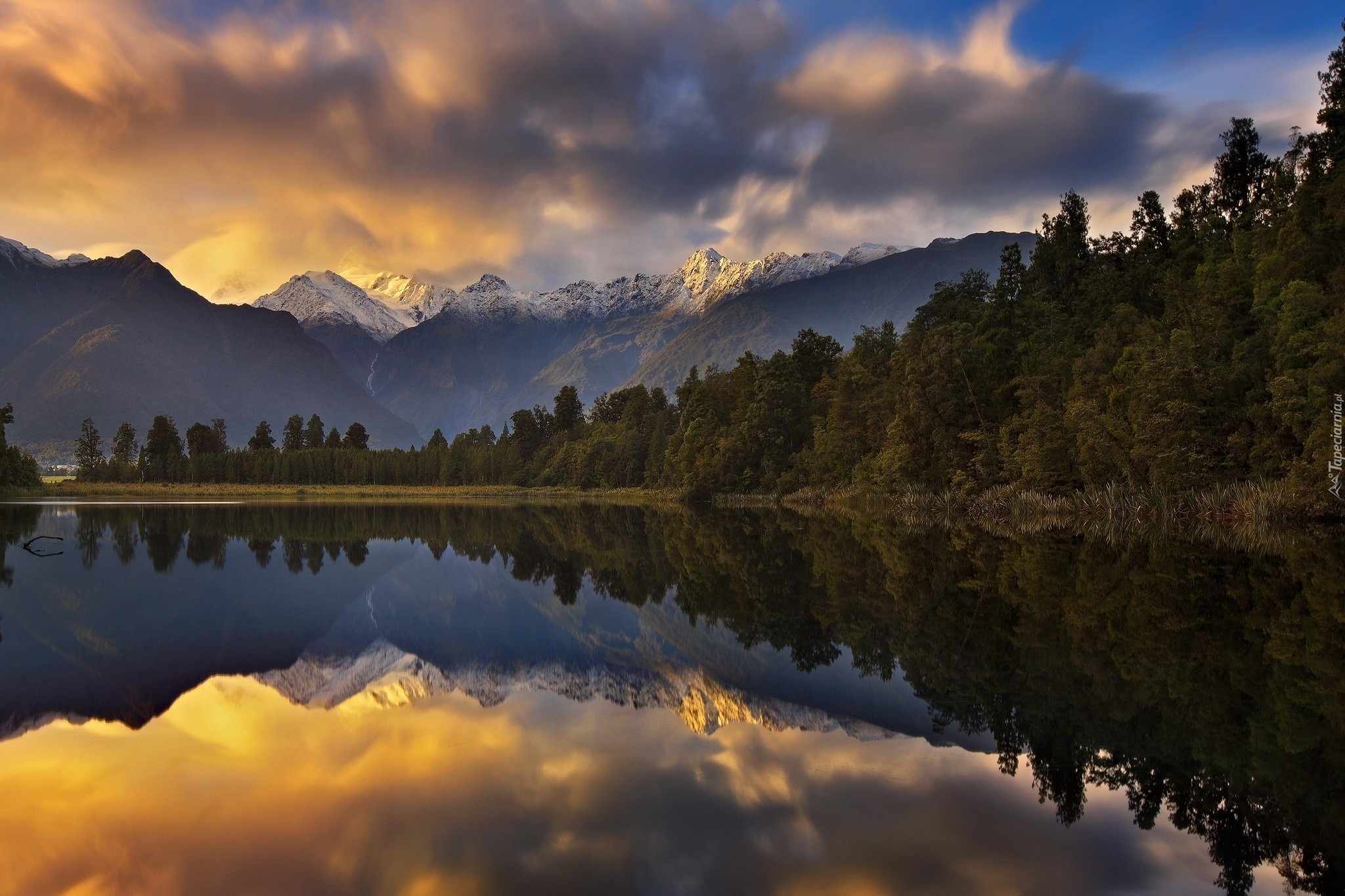 Edytor tapety: Niebo odbija się w nowozelandzkim jeziorze Mapourika