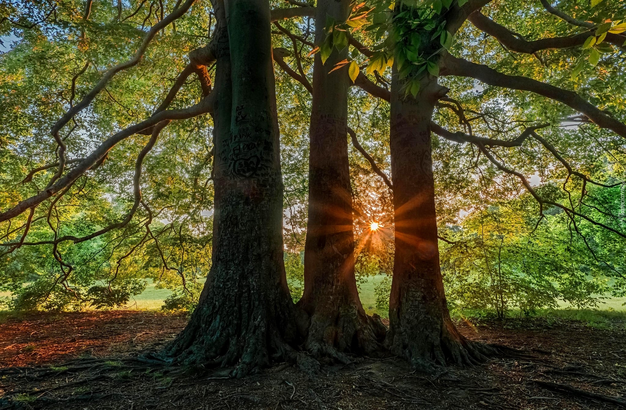 Edytor tapety: Drzewa w promieniach słońca latem