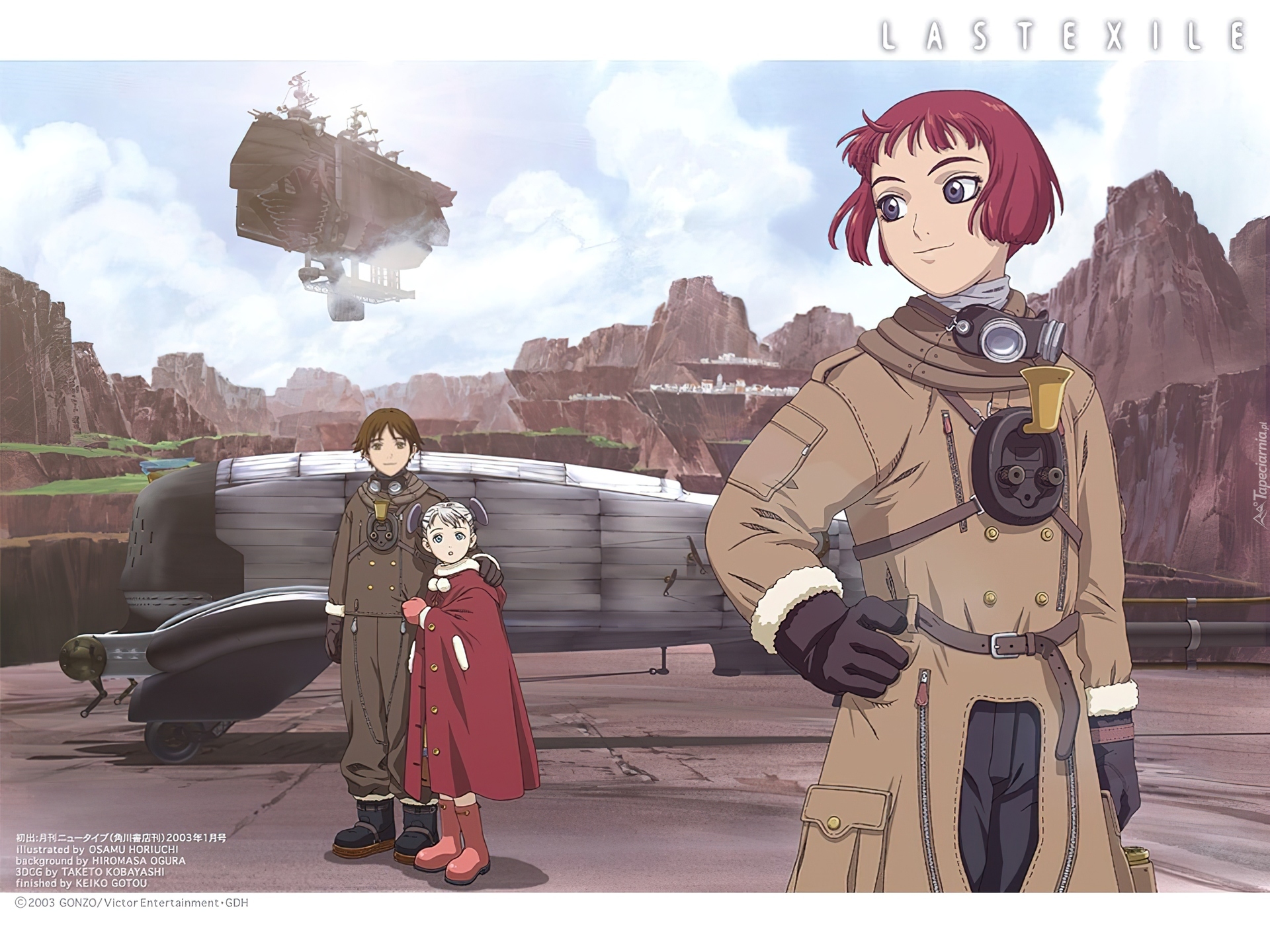 Edytor tapety: Last Exile, skały, ludzie, pojazd