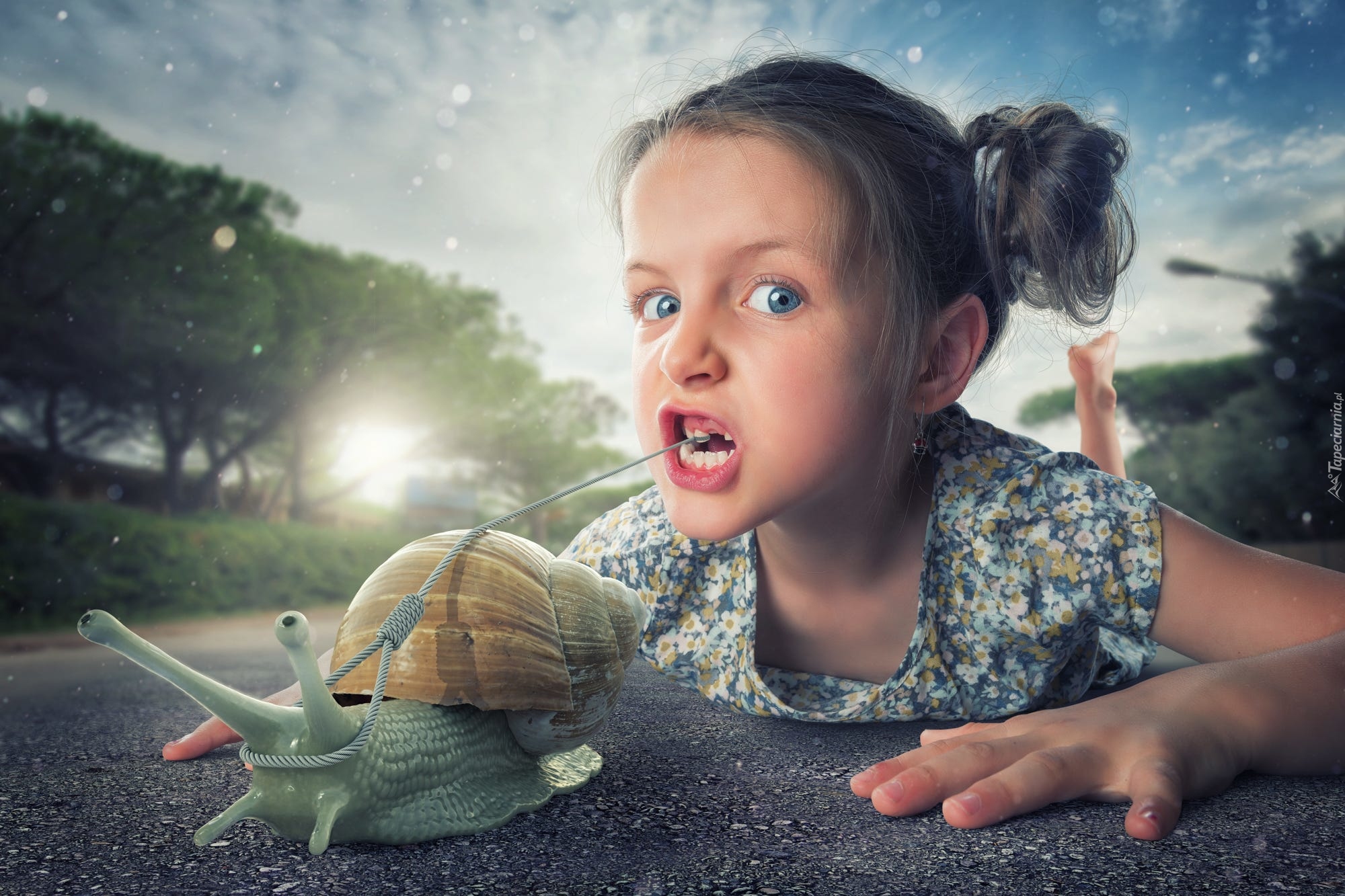 Edytor tapety: Ślimak pomagający dziewczynce wyrwać ząb