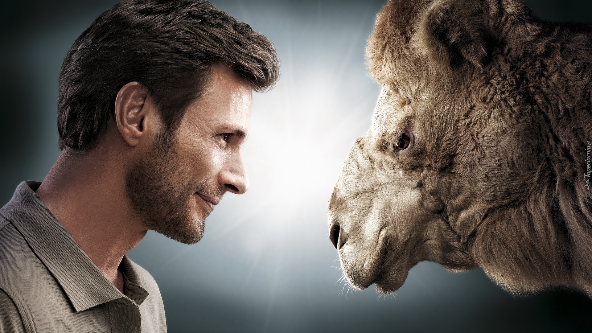 Edytor tapety: Mężczyzna i wielbłąd patrzą sobie w oczy