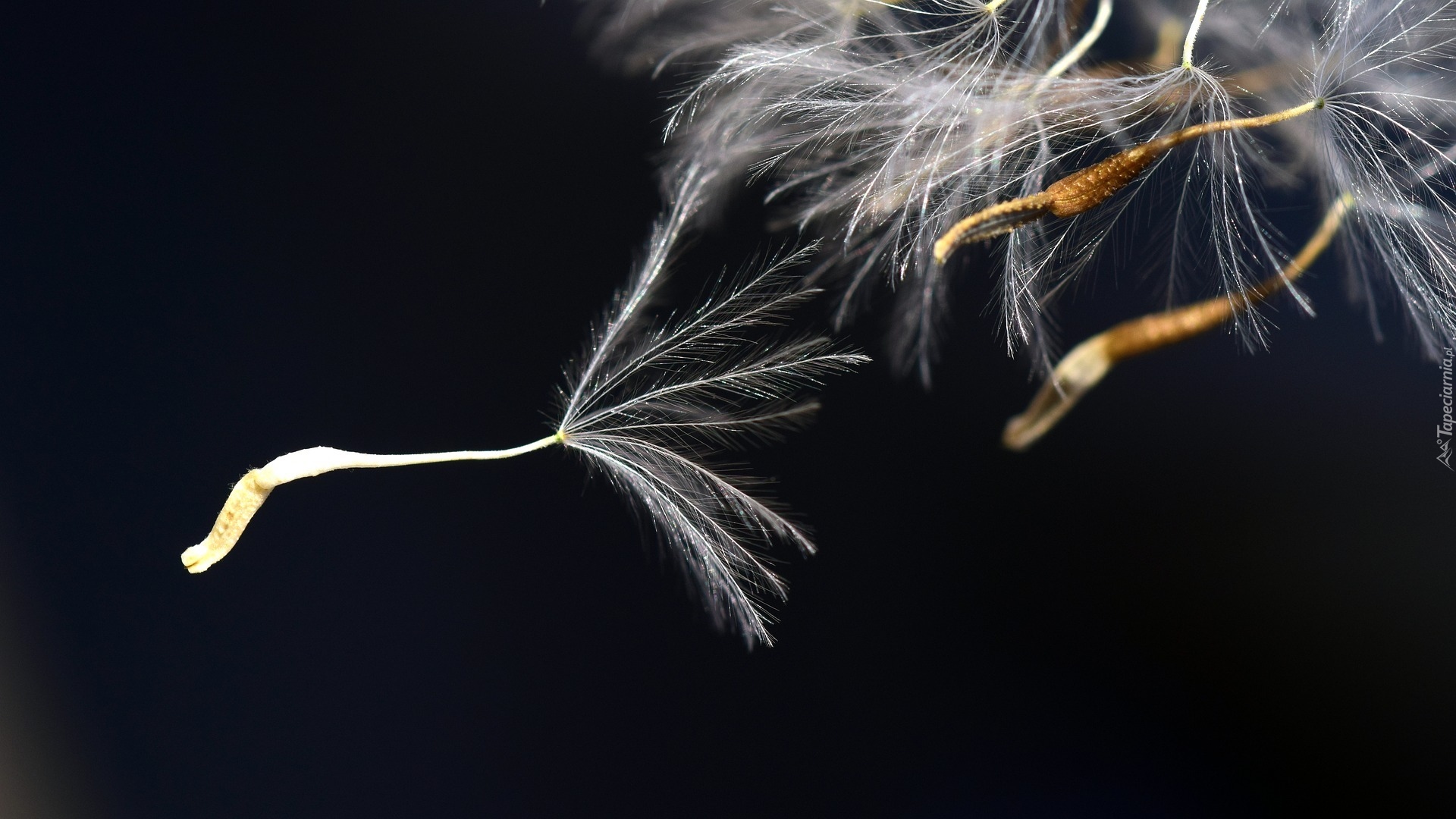 Edytor tapety: Fruwające niełupki dmuchawca na czarnym tle