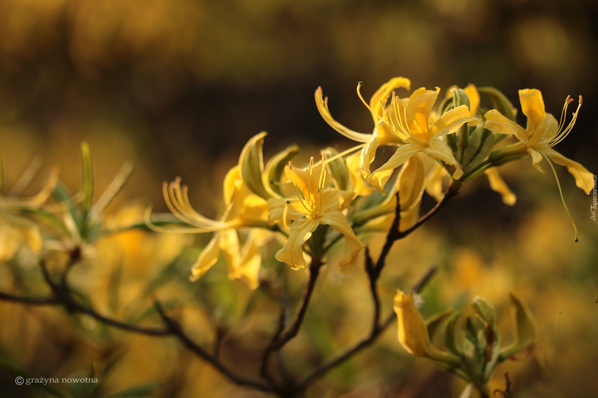 Edytor tapety: Żółte kwiaty azalii na gałązce