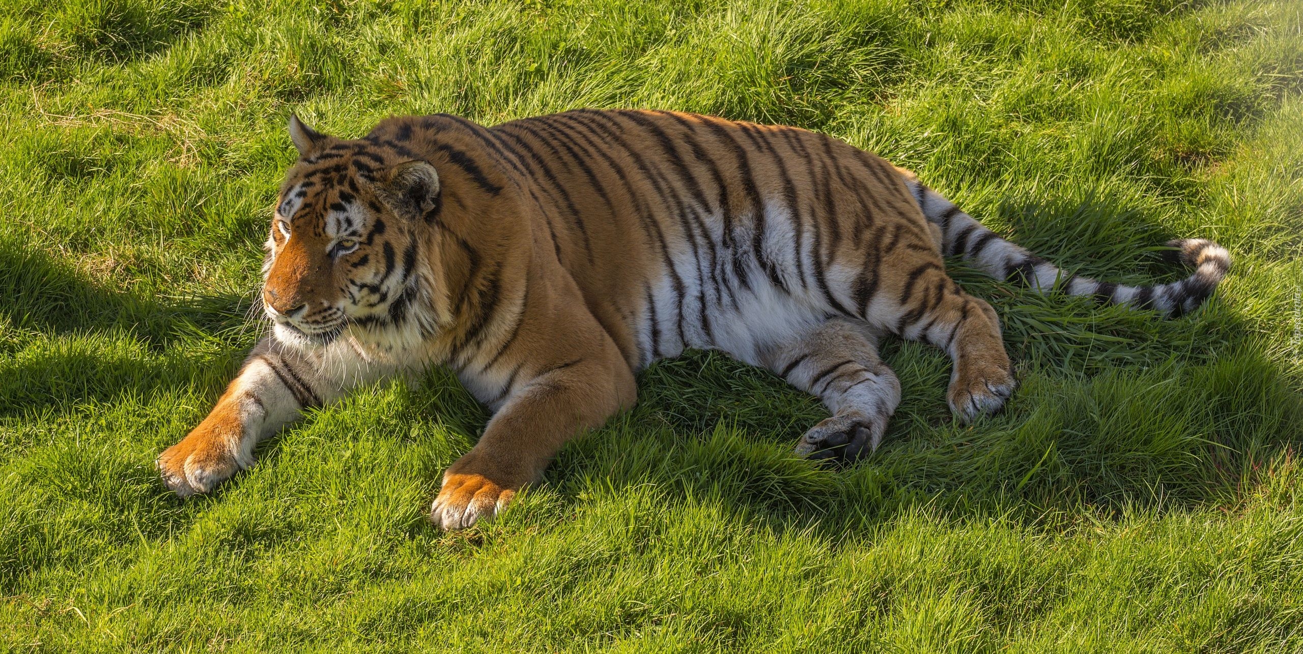 Edytor tapety: Tygrys wyleguje się na trawie