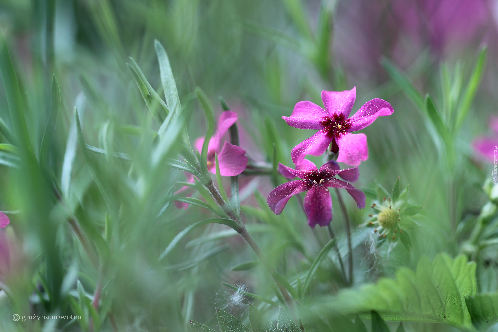 Edytor tapety: Różowe kwiaty zakwitły w trawie