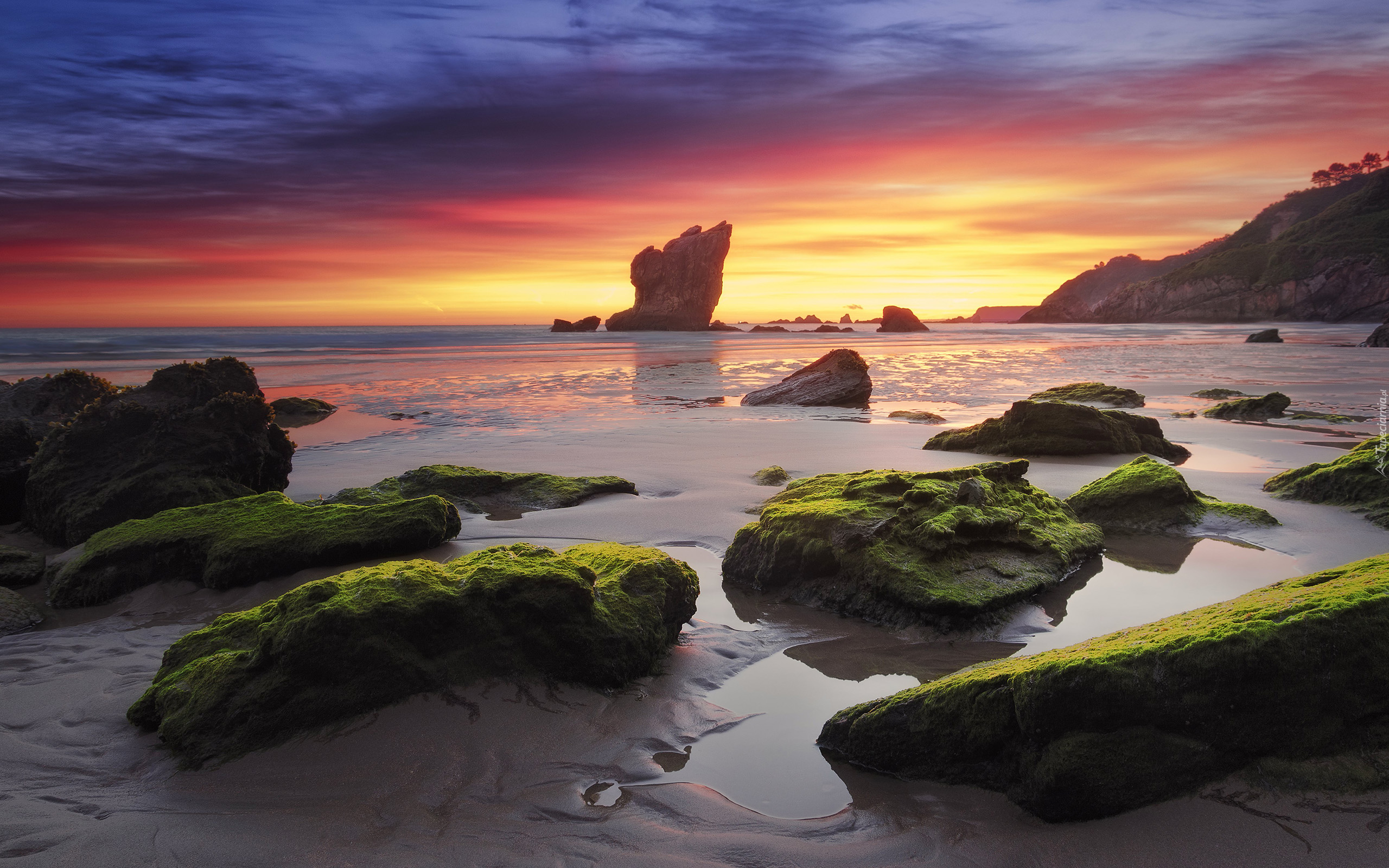 Edytor tapety: Plaża Aguilar w Hiszpanii o zachodzie słońca
