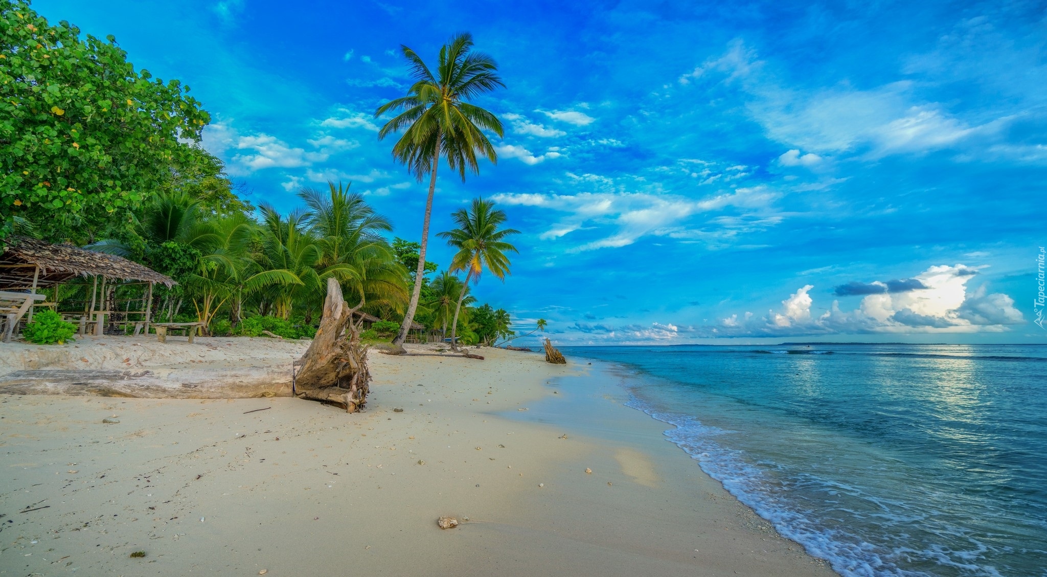 Edytor tapety: Palmy na nadmorskiej letniej plaży