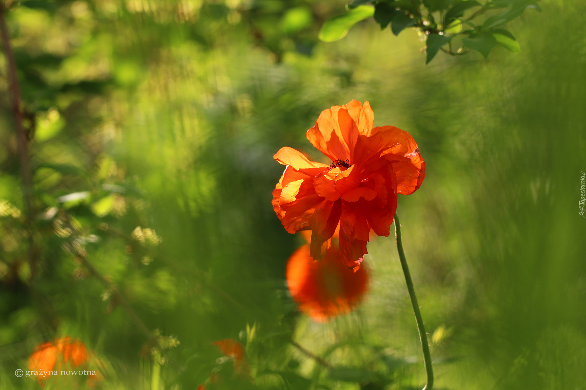 Edytor tapety: Rozświetlony słońcem czerwony mak na rozmytym tle