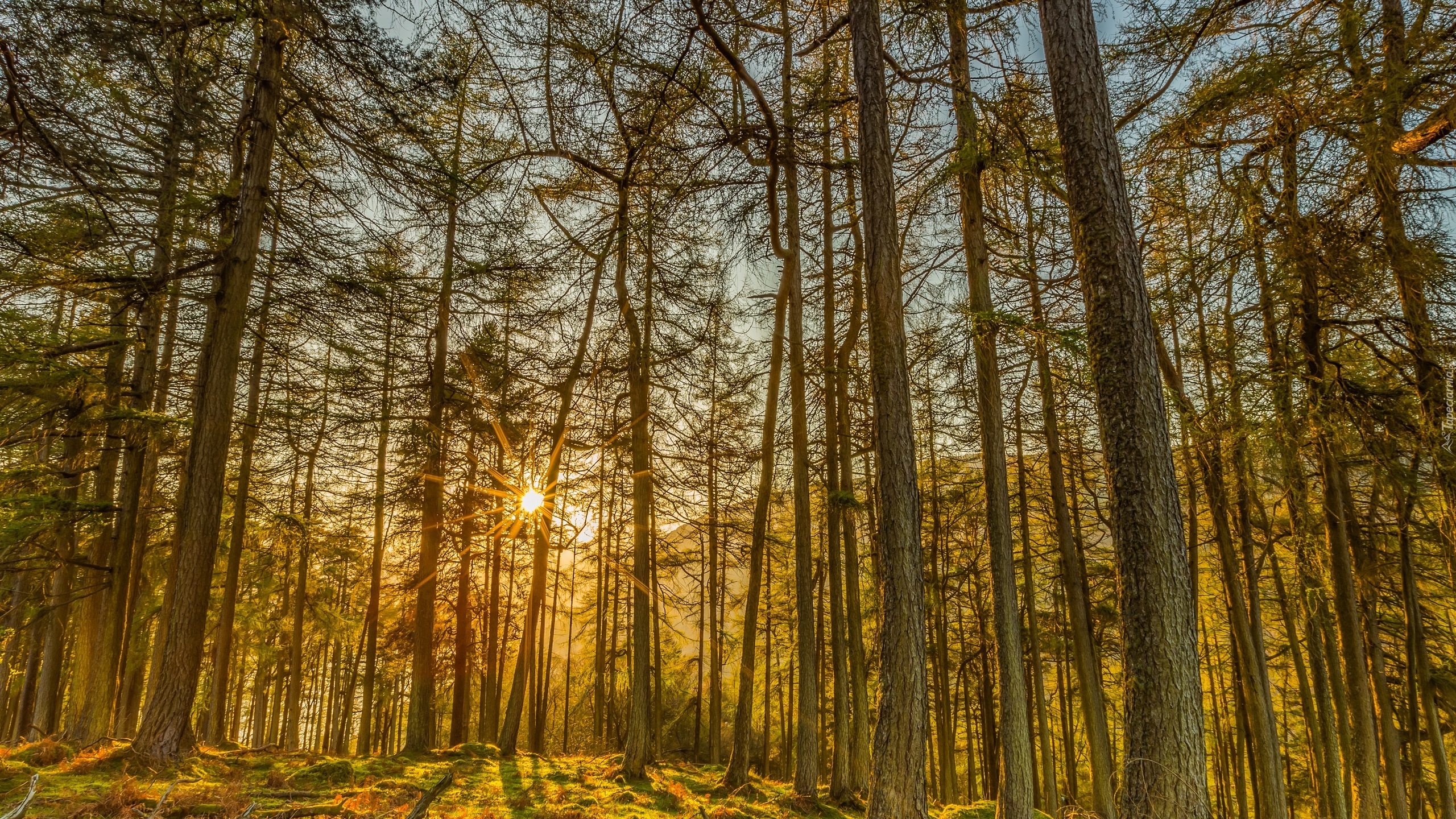 Edytor tapety: Las oświetlony promieniami słońca