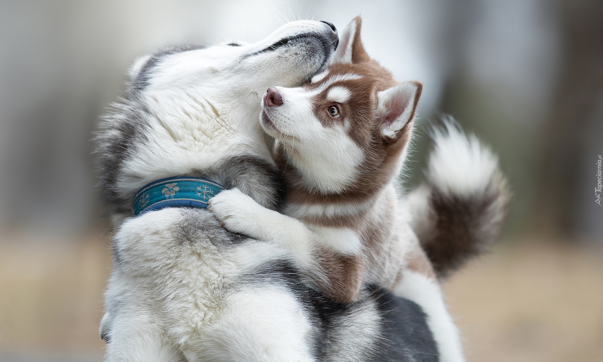 Edytor tapety: Psy rasy siberian husky podczas zabawy