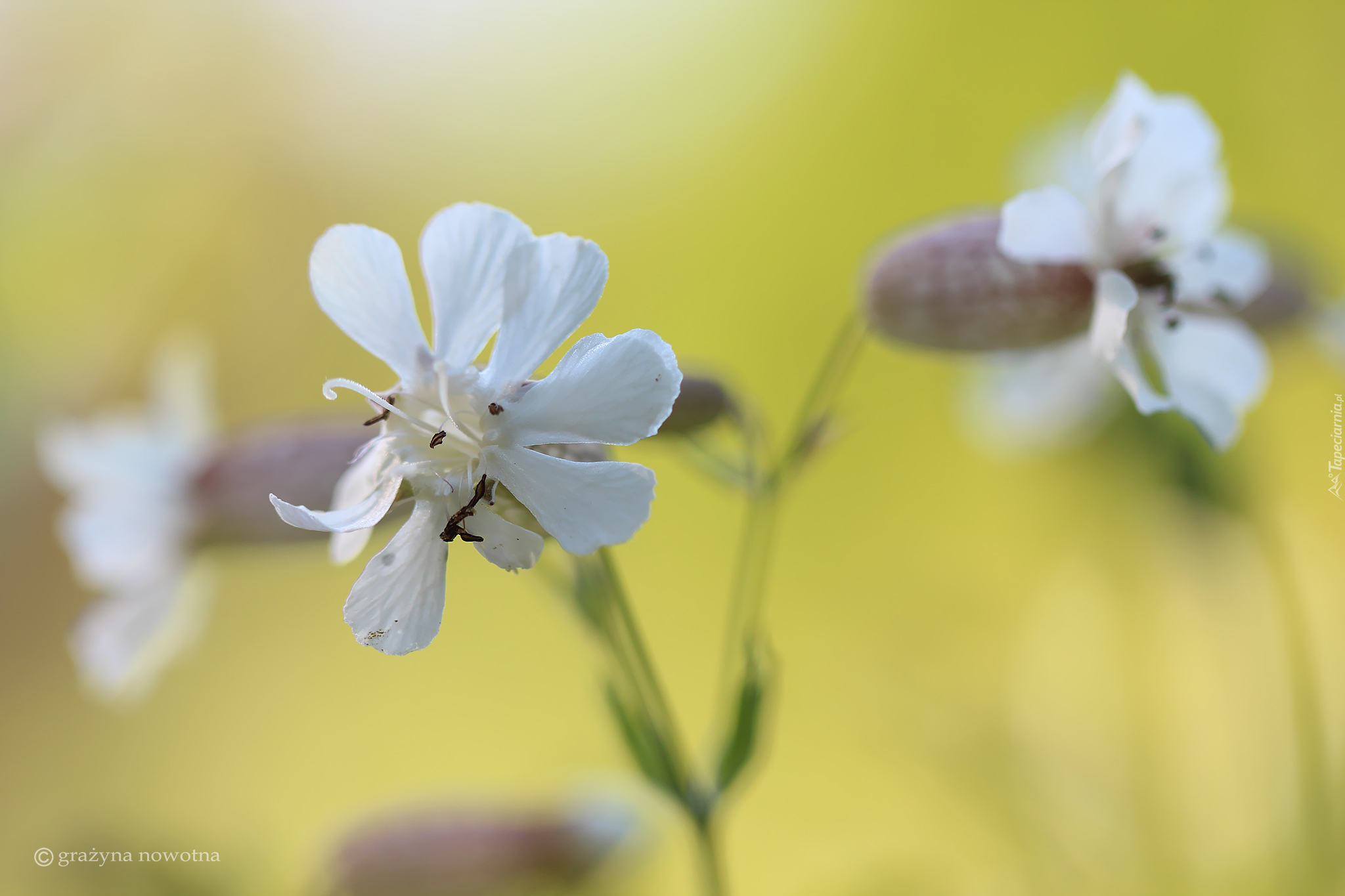Edytor tapety: Białe kwiaty lepnicy na rozmytym tle